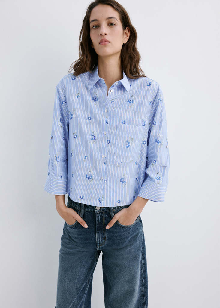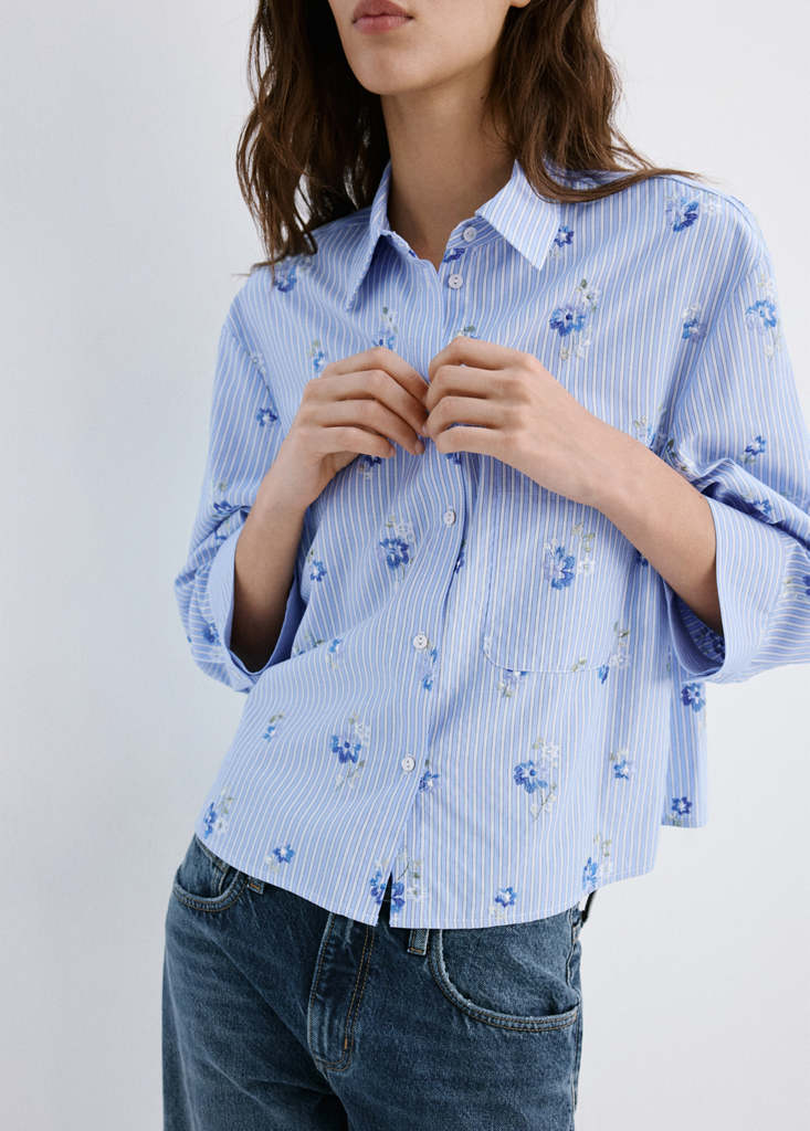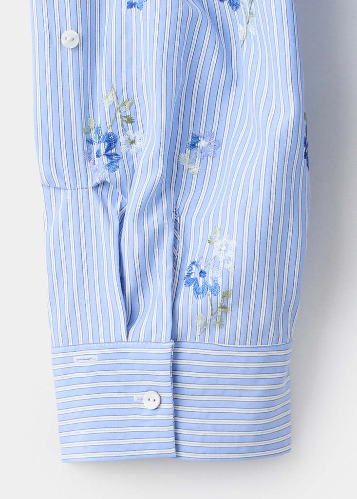 Flower Embroidered Striped Shirt