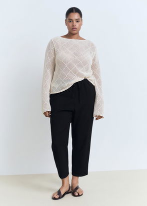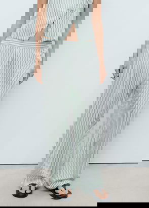 Fluid fabric. Long design. Straight design. Printed Design. Two side pockets. Elastic waistband. Adjustable drawstring. Total look.