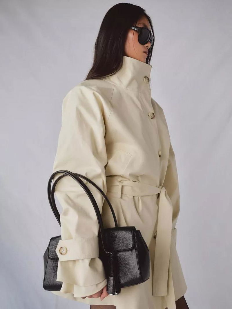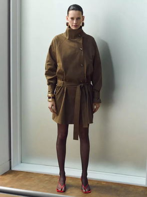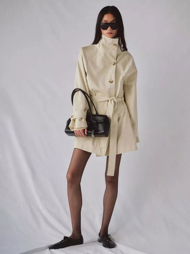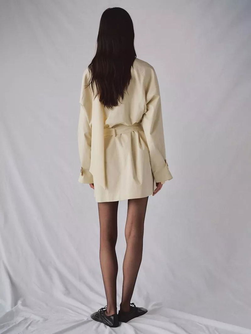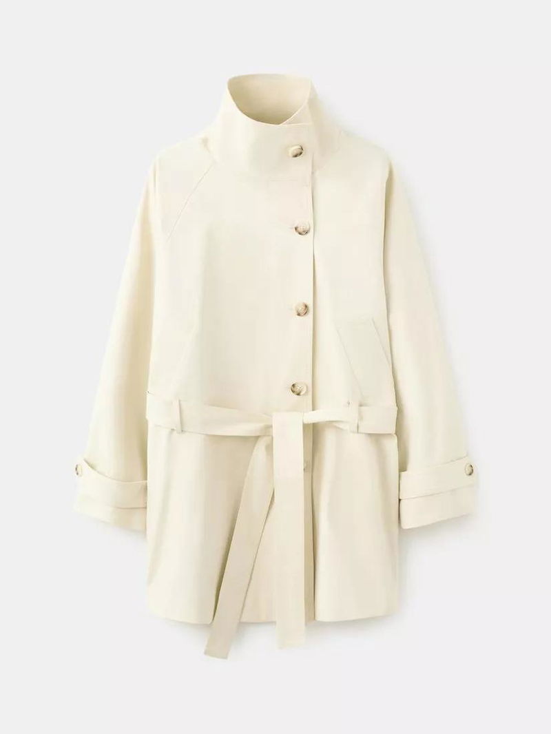 Funnel Neck Belted Trench Coat, Raw