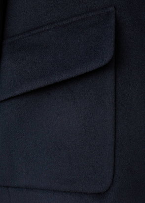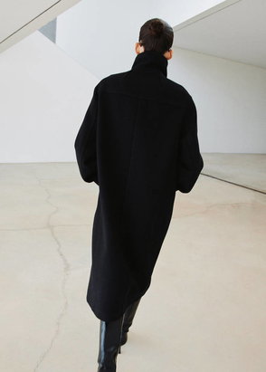 Denim-style cotton fabric. Oversized design. Funnel neck. Long sleeves. Two side pockets. Two side pockets with flaps. Front closure with zip and concealed buttons. Inner lining