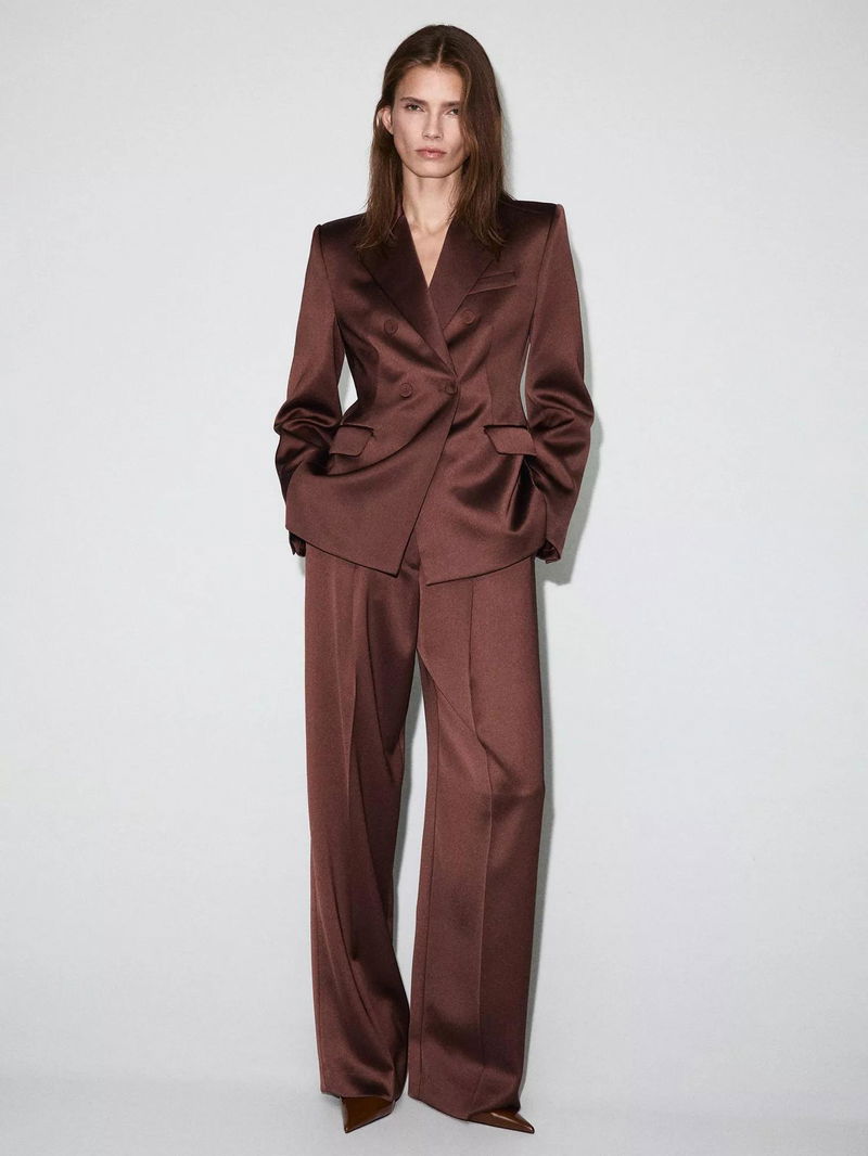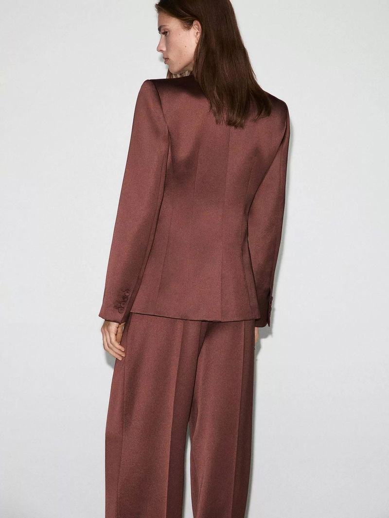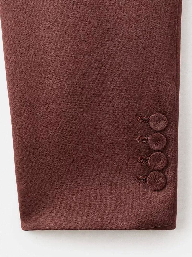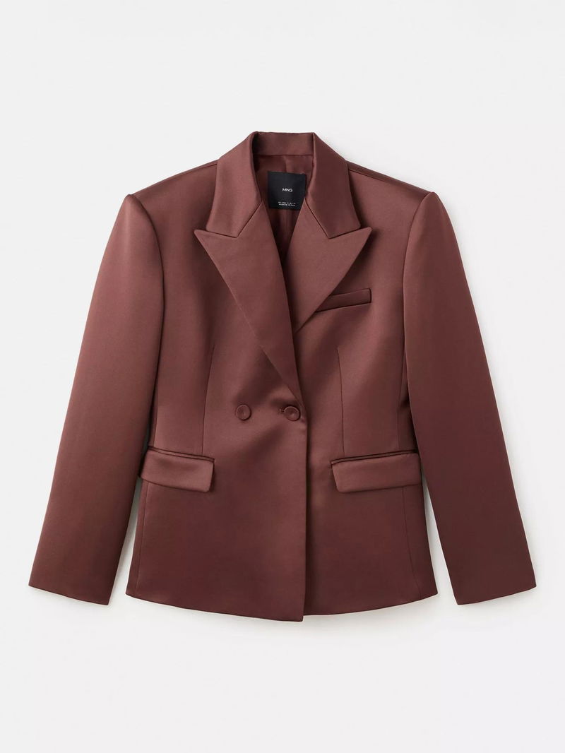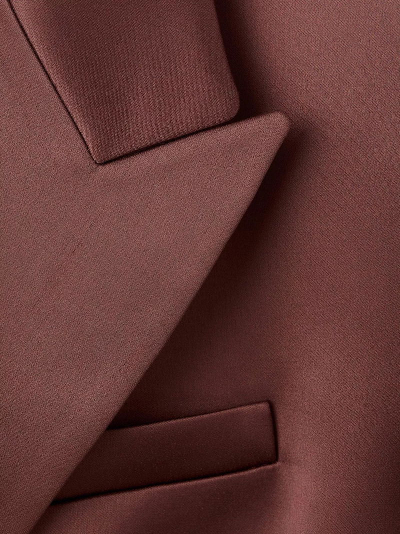 Gilda Satin Double-Breasted Blazer, Brown