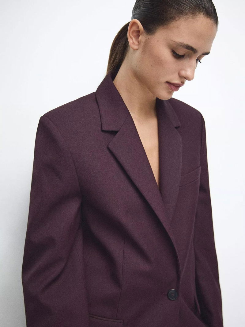 Hidra Single Breasted Blazer, Dark Red