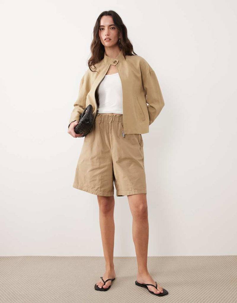 High Neck Zip Through Jacket In Sand