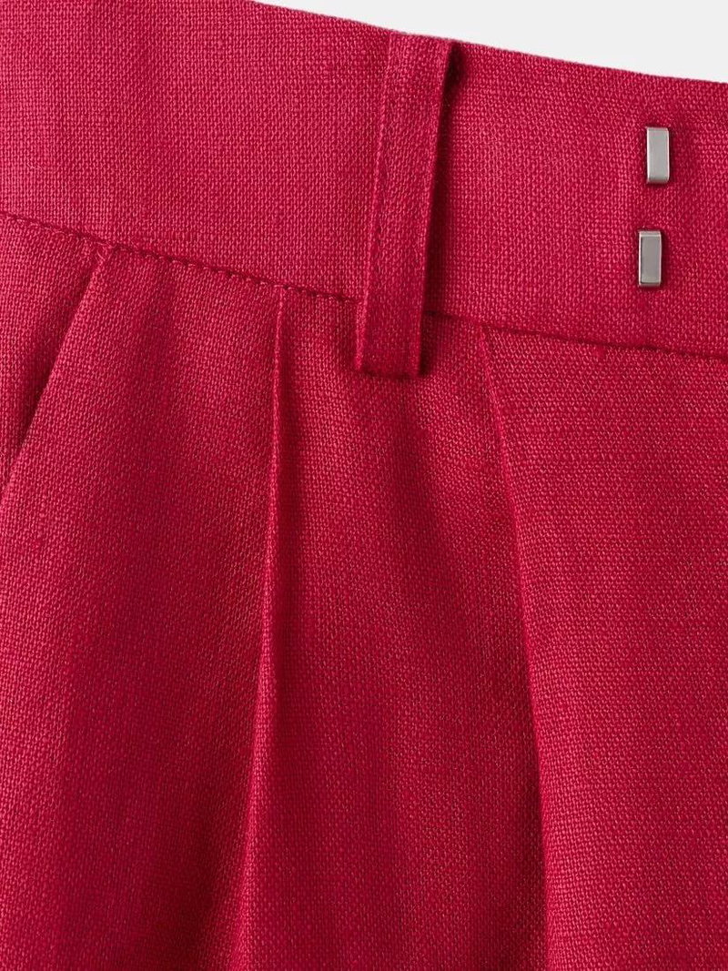 High Waisted Tailored Wide Leg Trousers, Red