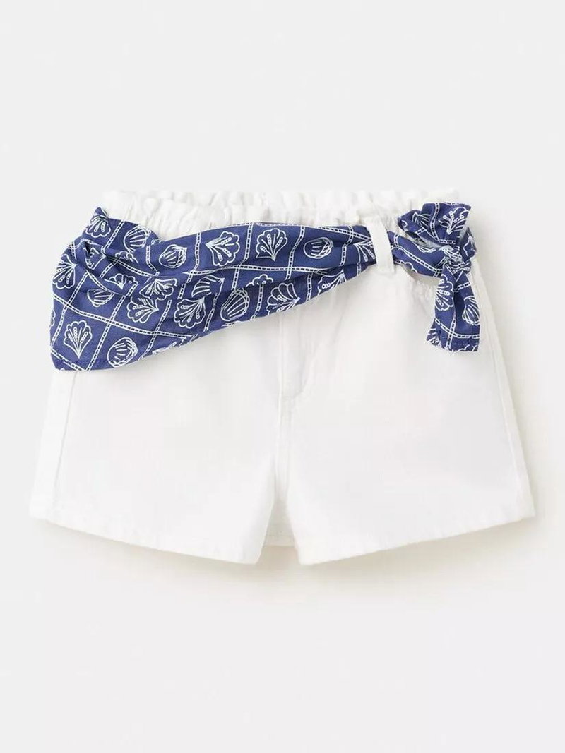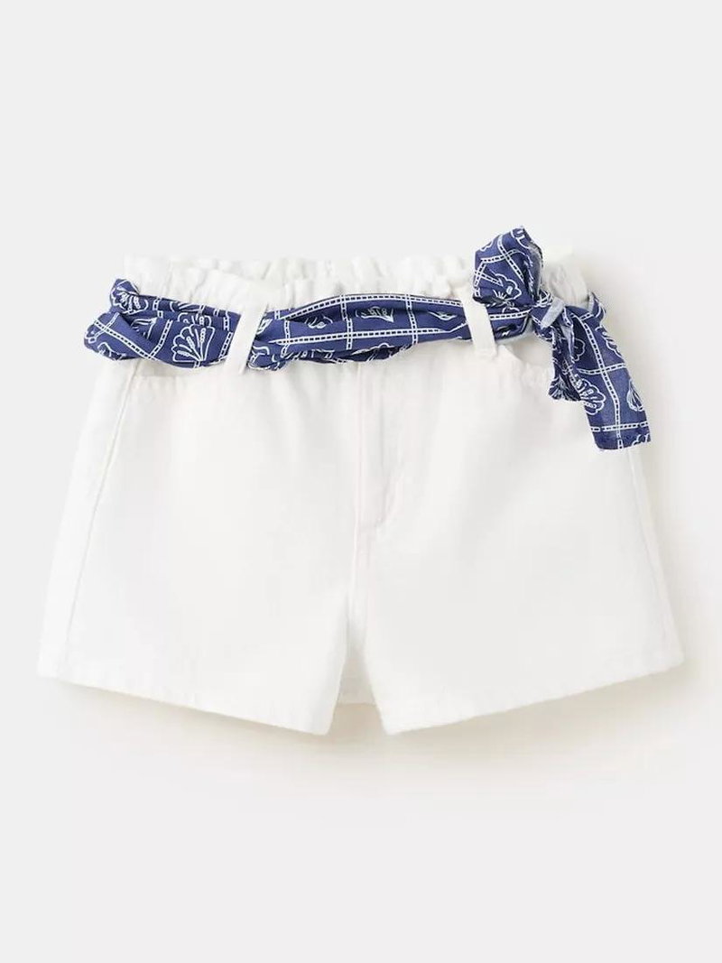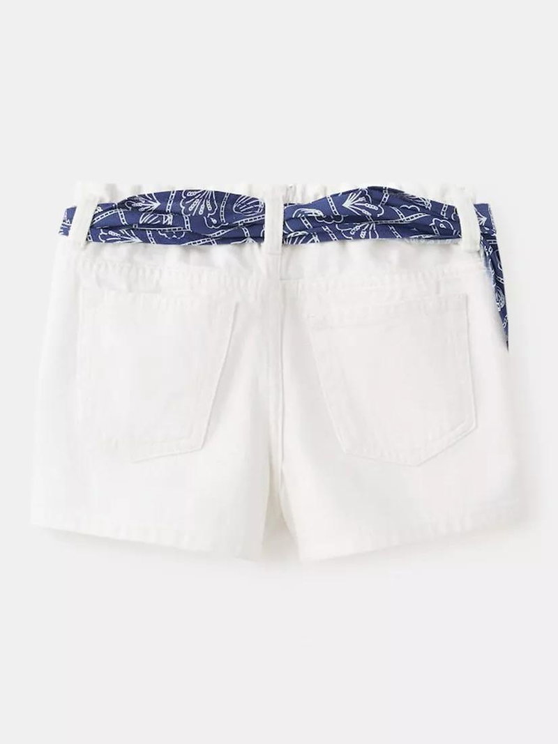Kids' Sash High Waisted Denim Mini Shorts, White
