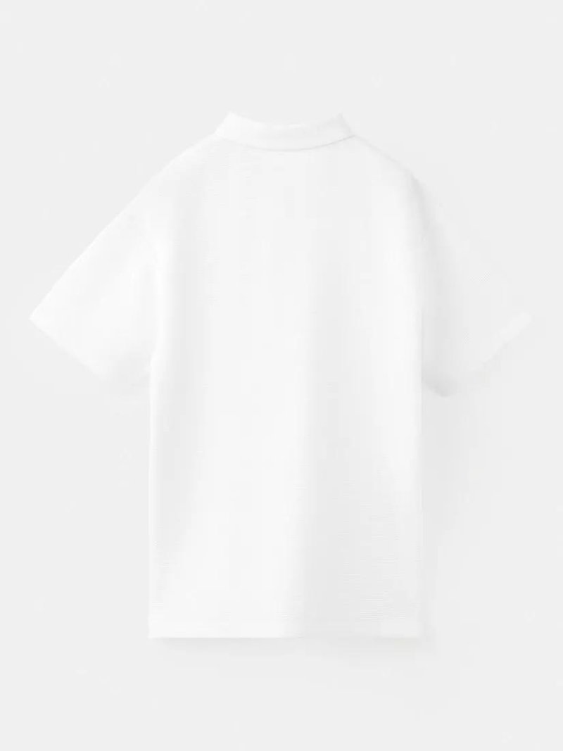 Kids' Short Sleeve Ribbed Polo Shirt, White