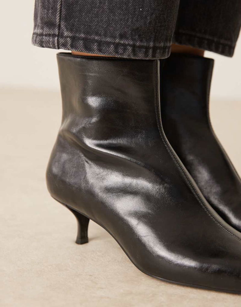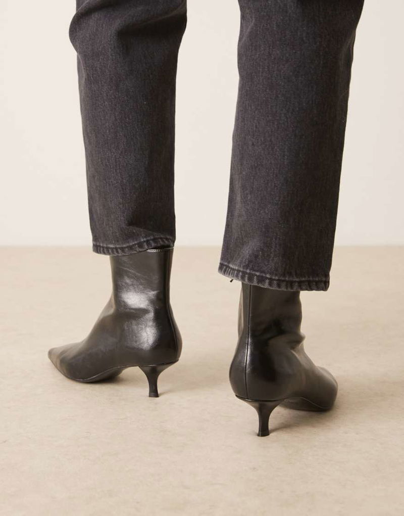 Kitten Heel Pointed Ankle Boots In Black