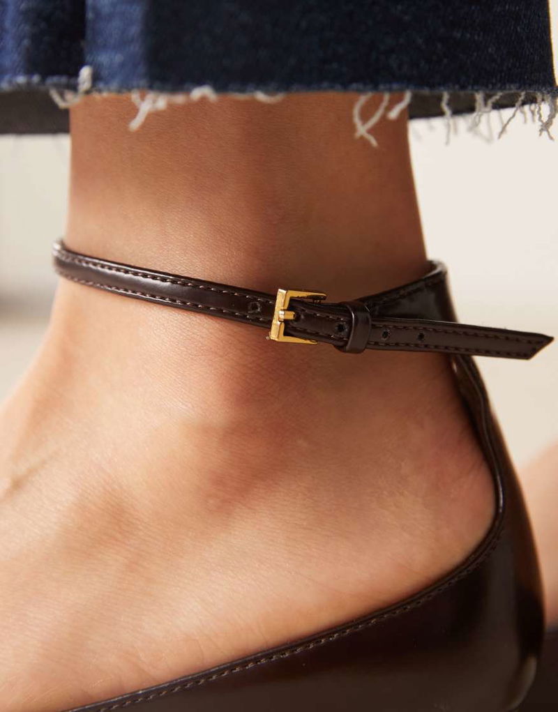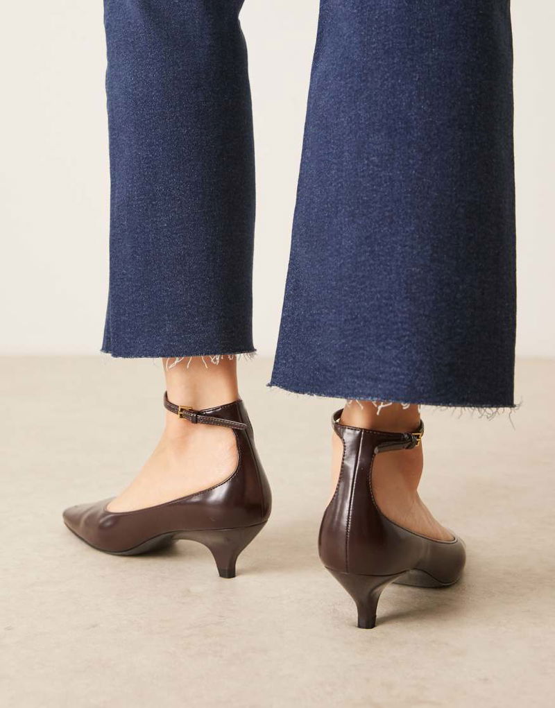 Kitten Heeled Mary Jane With Ankle Strap In Dark Brown