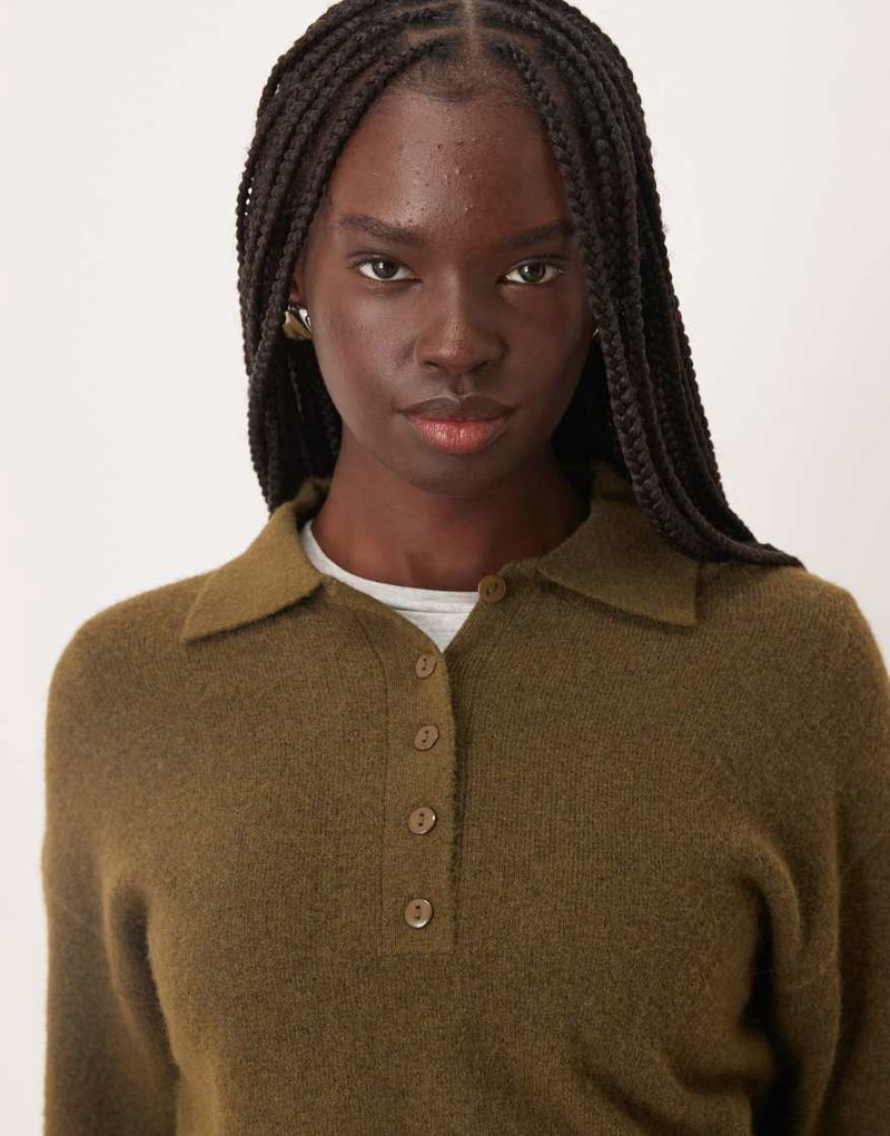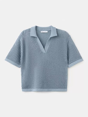 Knit Polo Top In Light Khaki