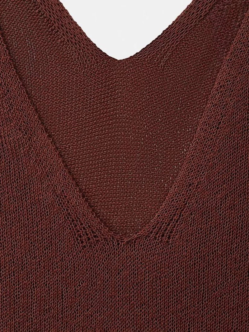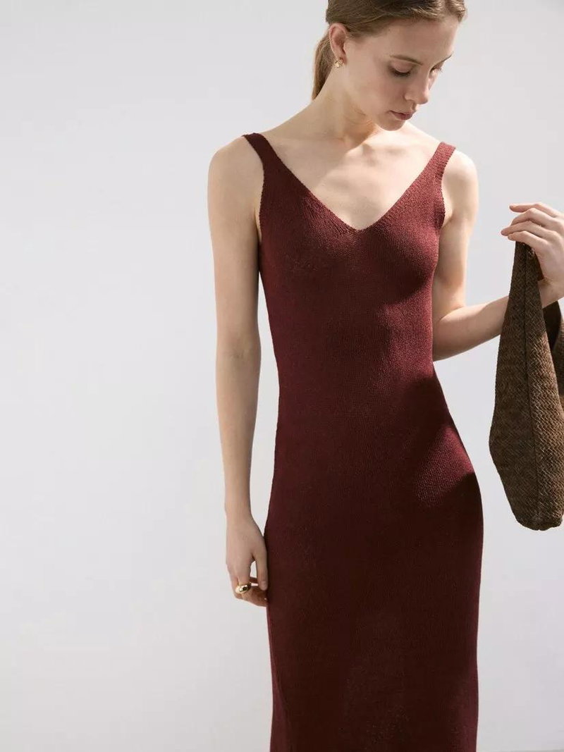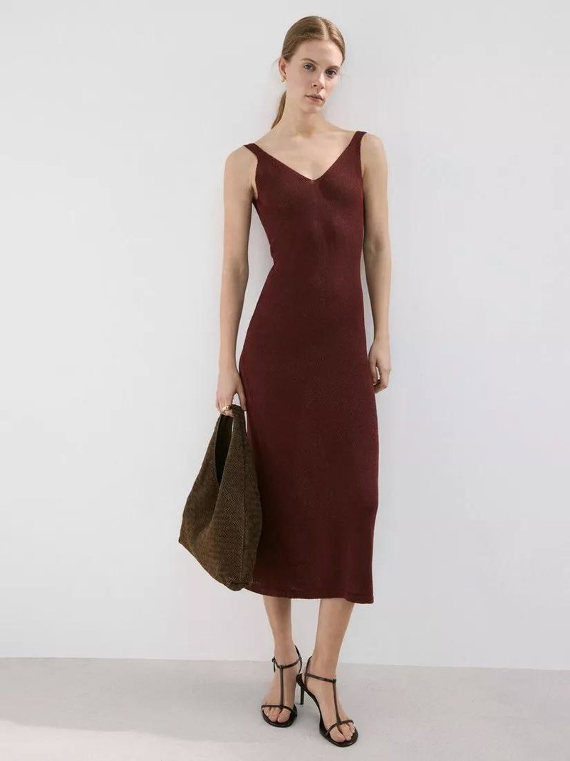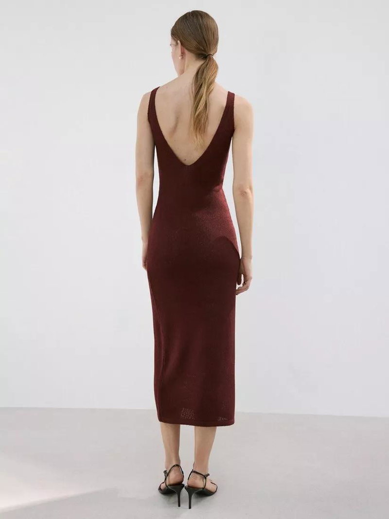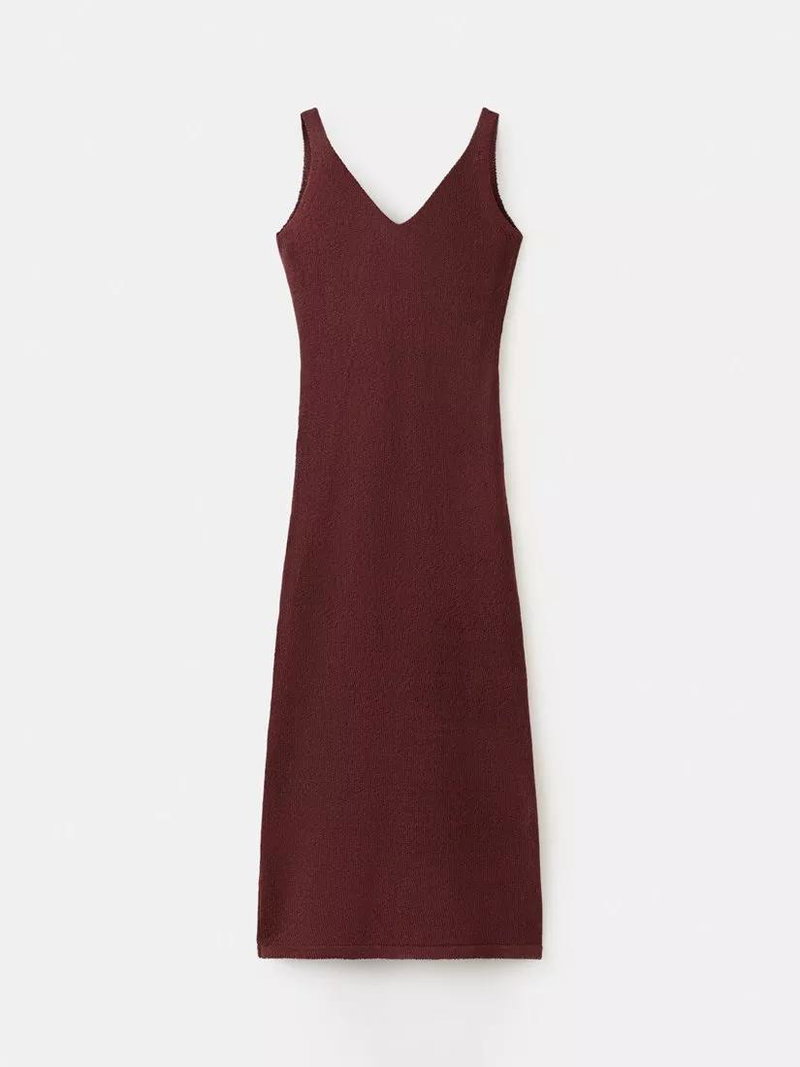 Knit V-Neck Midi Dress, Dark Red
