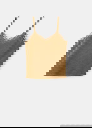 Crew neck. Sleeveless. Straps with knot fastening. Embroidered details. Lace trims.