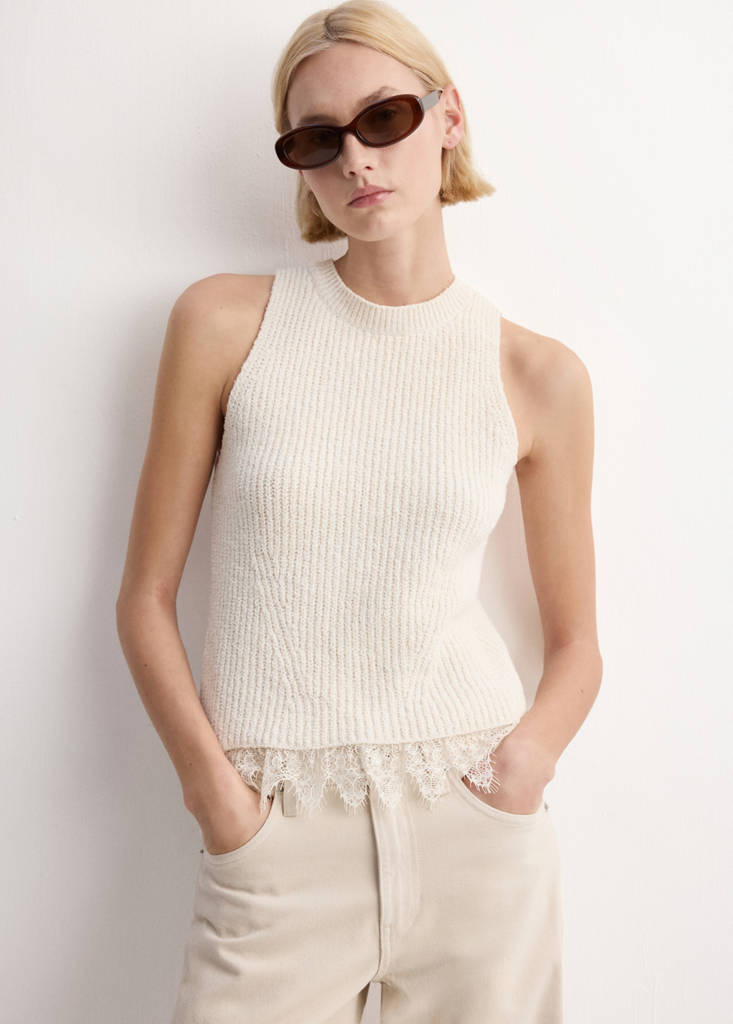 Lace-trim Knit Top