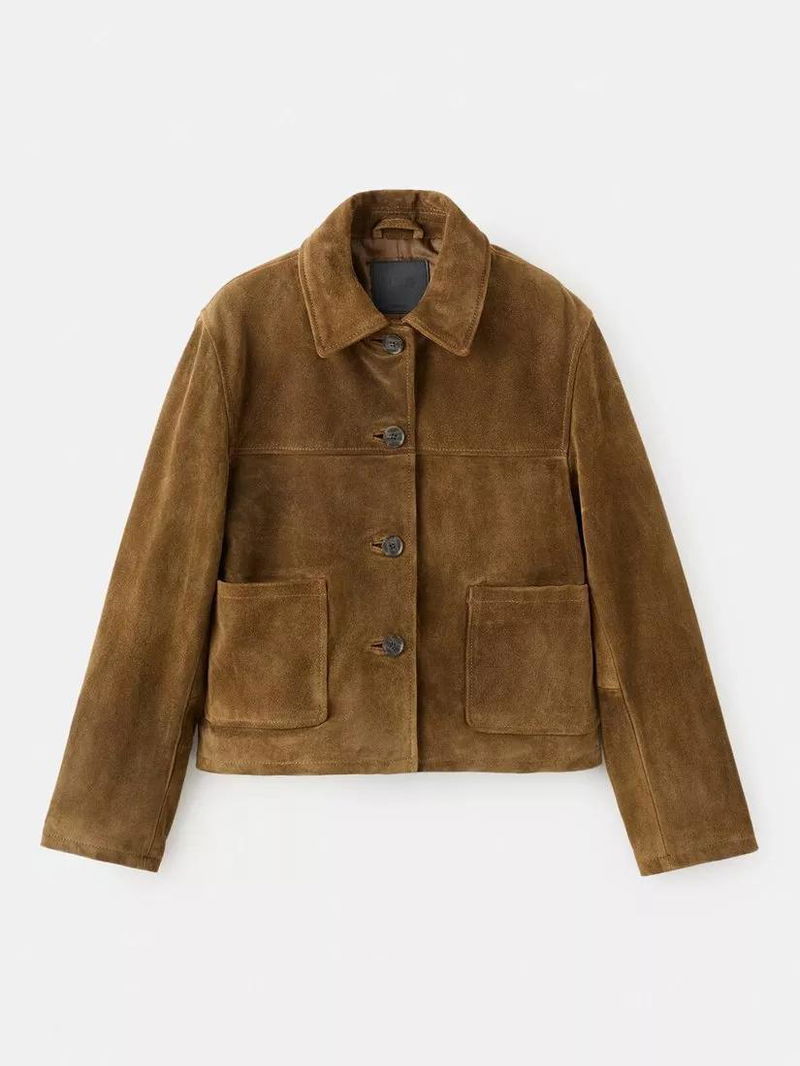 Laura Cropped Pure Suede Jacket, Tobacco