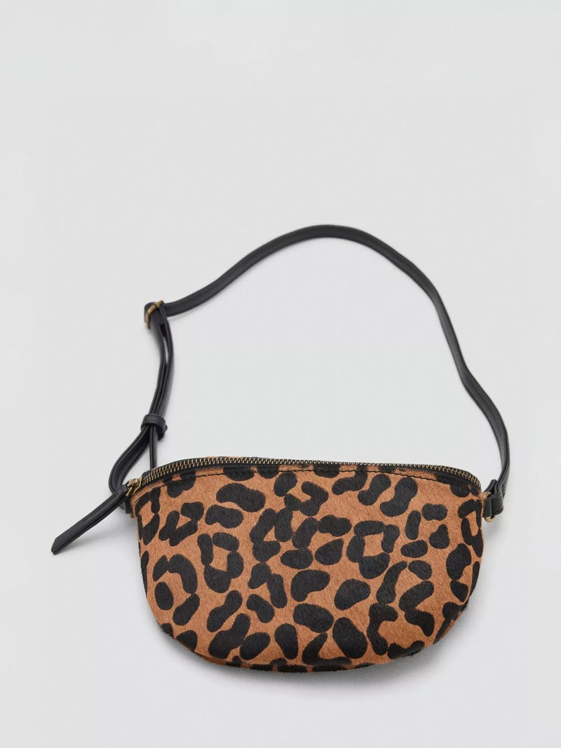 Leather Leopard Print Crossbody Bag, Brown/Multi