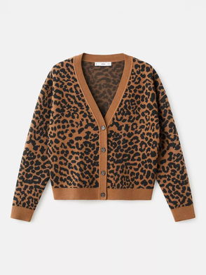 Crafted from fine-knit fabric, this straight design features a leopard print. It includes a V-neck and long sleeves, with a front button fastening. Available in Plus Size. Comes with a matching top