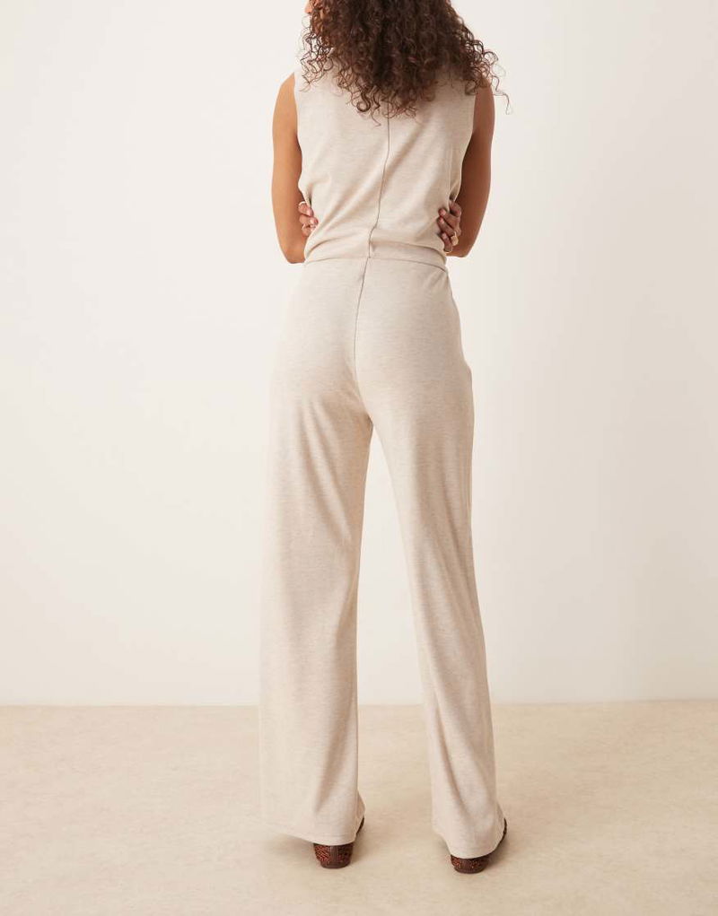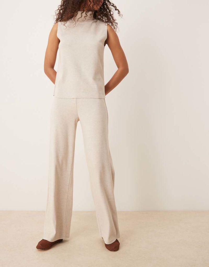 Light Weight Knitted Trouser Co-ord In Light Beige