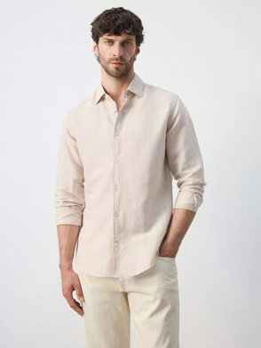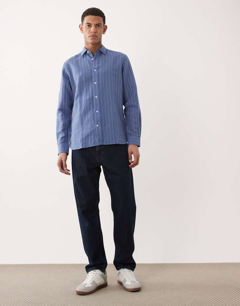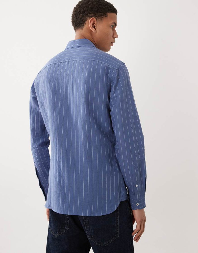 Linen Mix Long Sleeve Striped Shirt In Blue