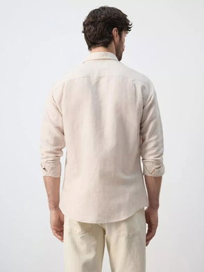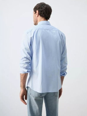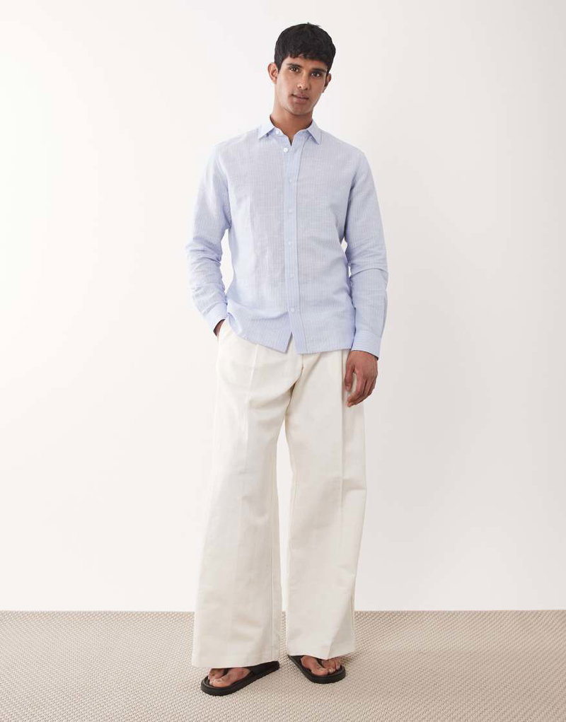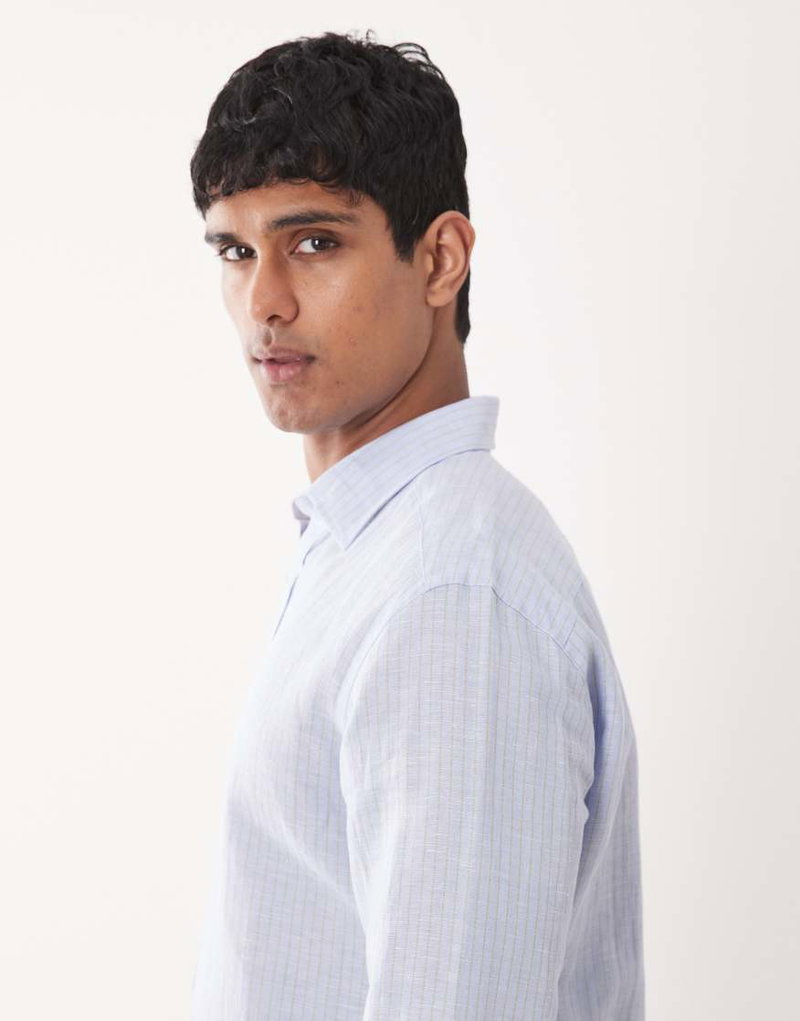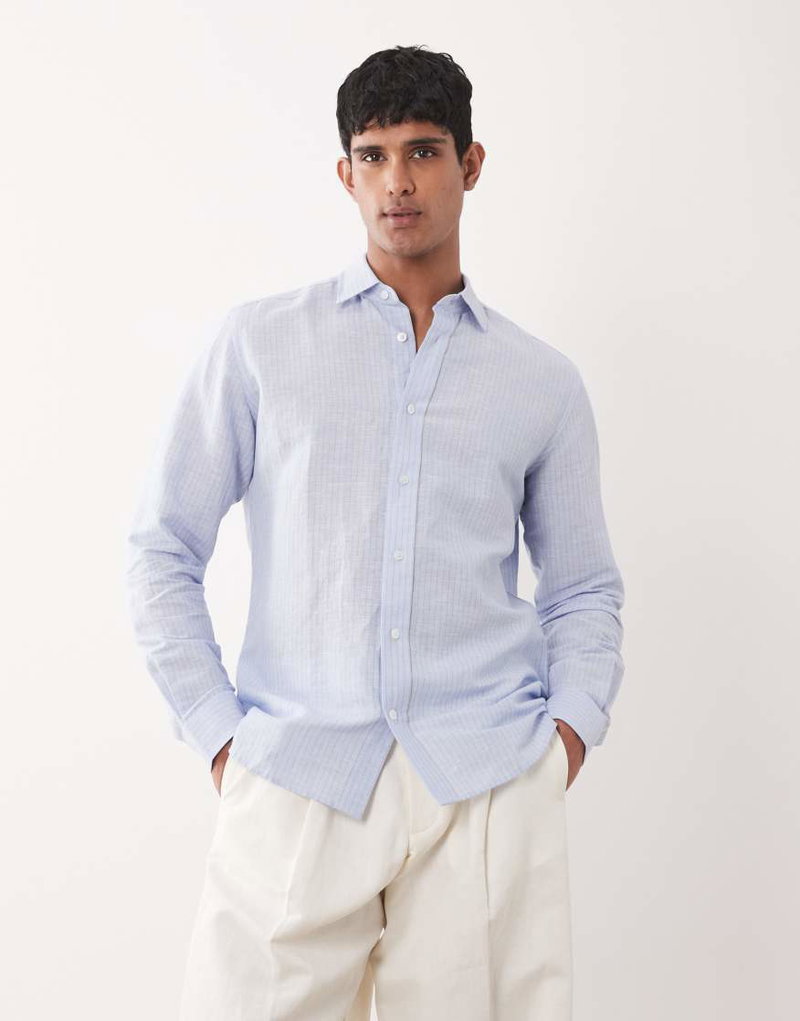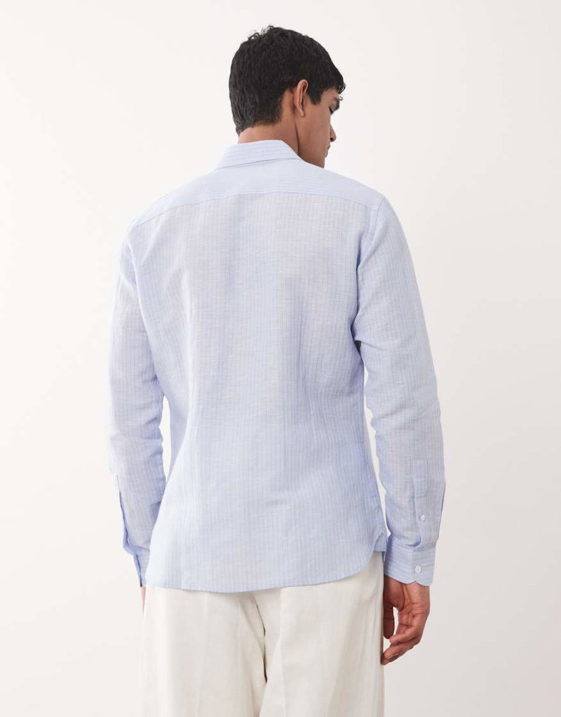 Linen Mix Long Sleeve Striped Shirt In Light Blue