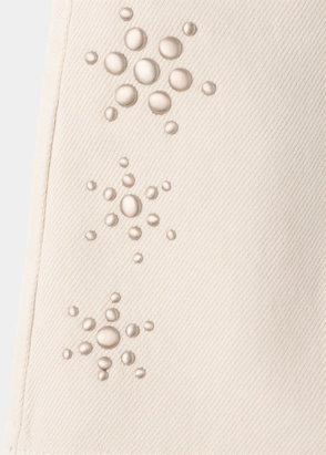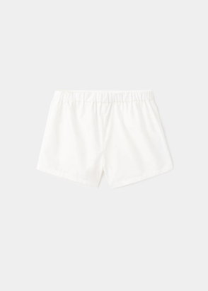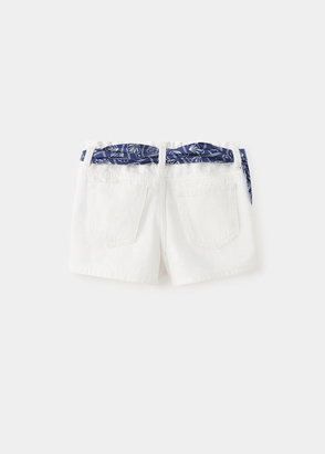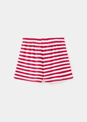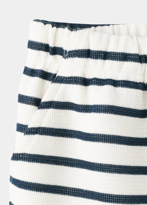 Linen fabric. Straight design. Short design. Two side patch pockets. Edging details. Elastic waist with drawstring.