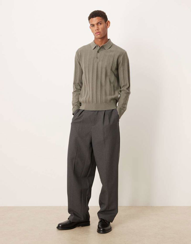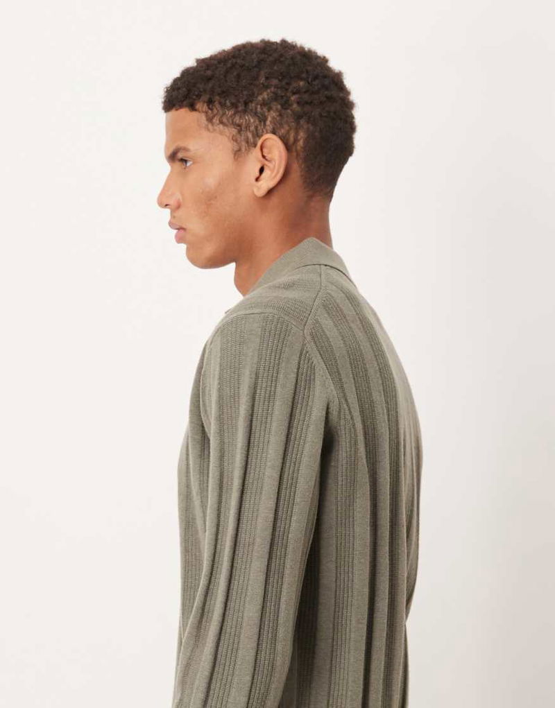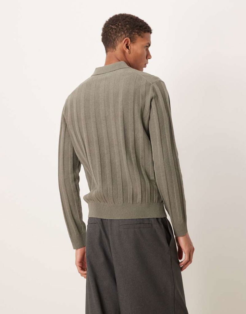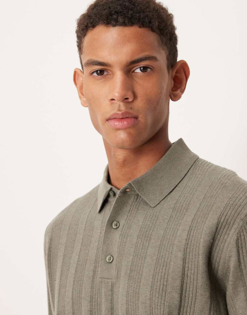 Long Sleeve Cable Knit Polo Shirt In Light Green