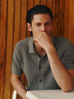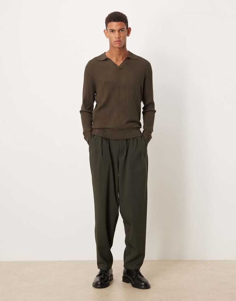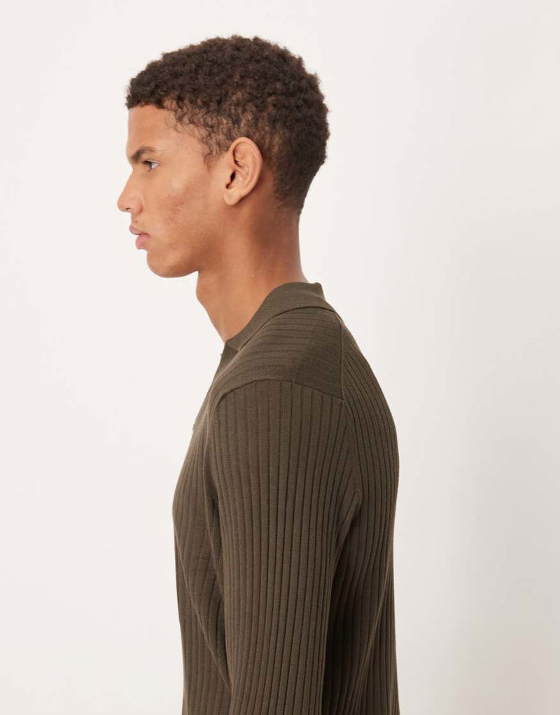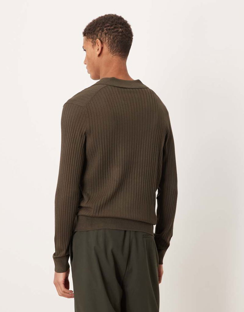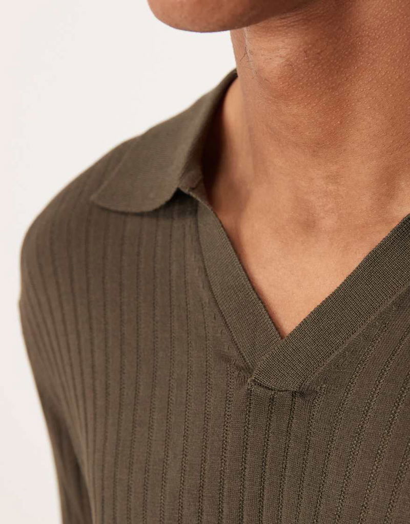Long Sleeve Revere Collar Polo Shirt In Khaki