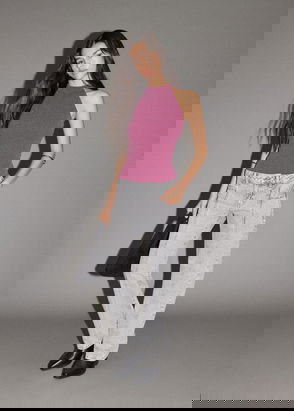 Fine-knit fabric. V-neck. Sleeveless. Wide straps. Slip-on. Available Plus.