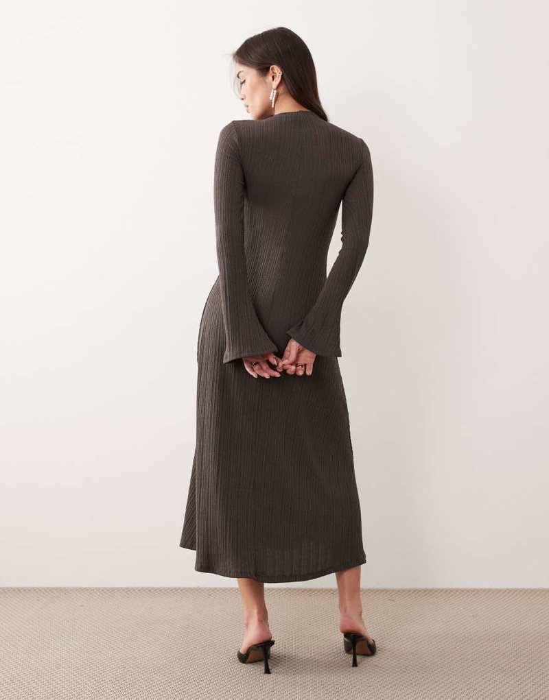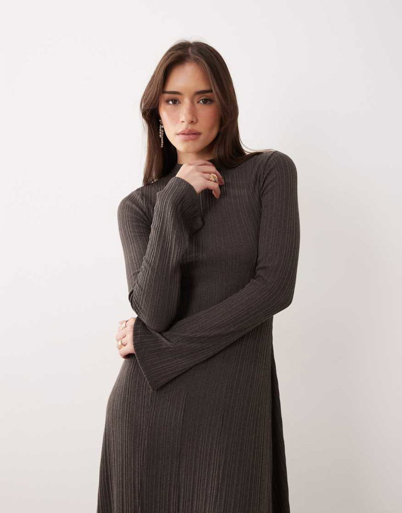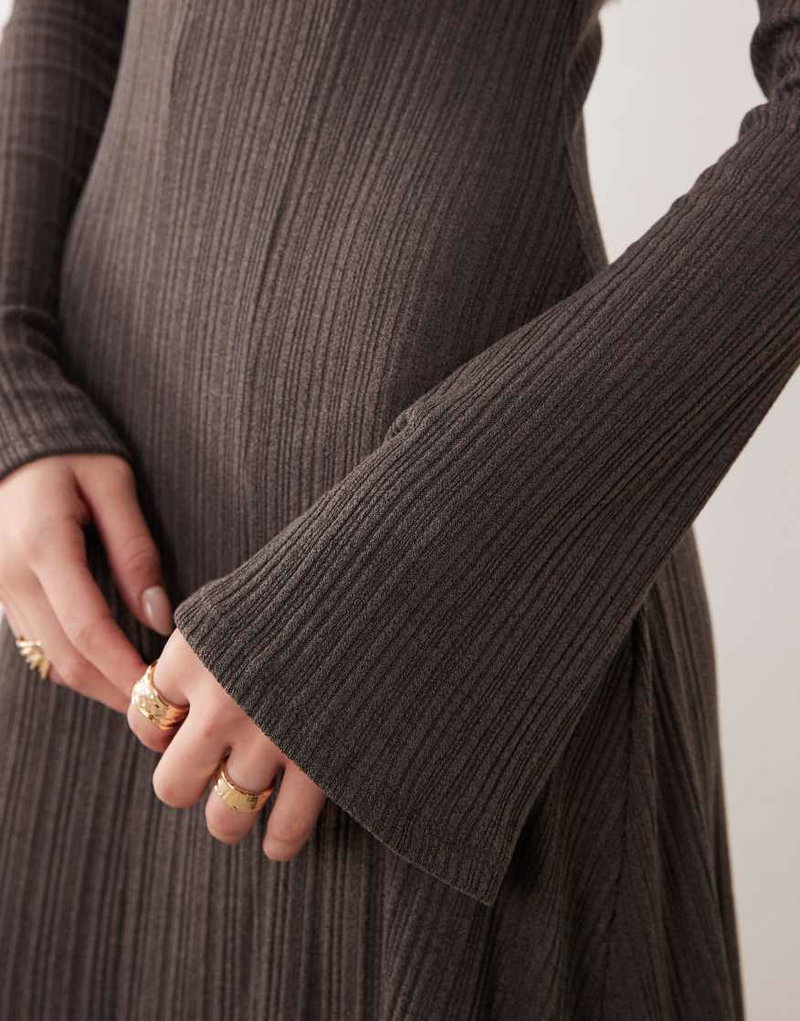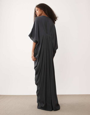 Maxi Dress With Flared Sleeves In Gray