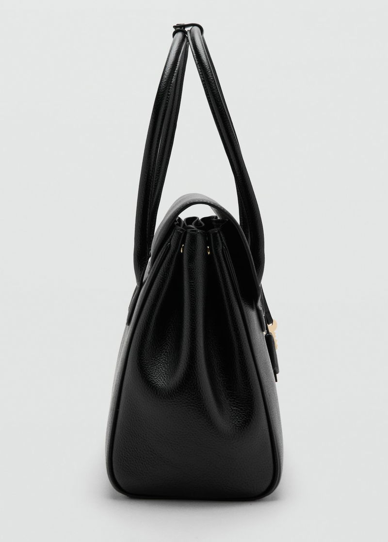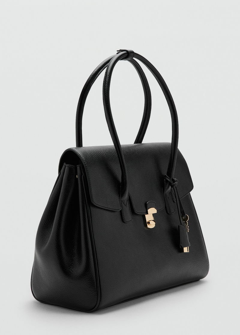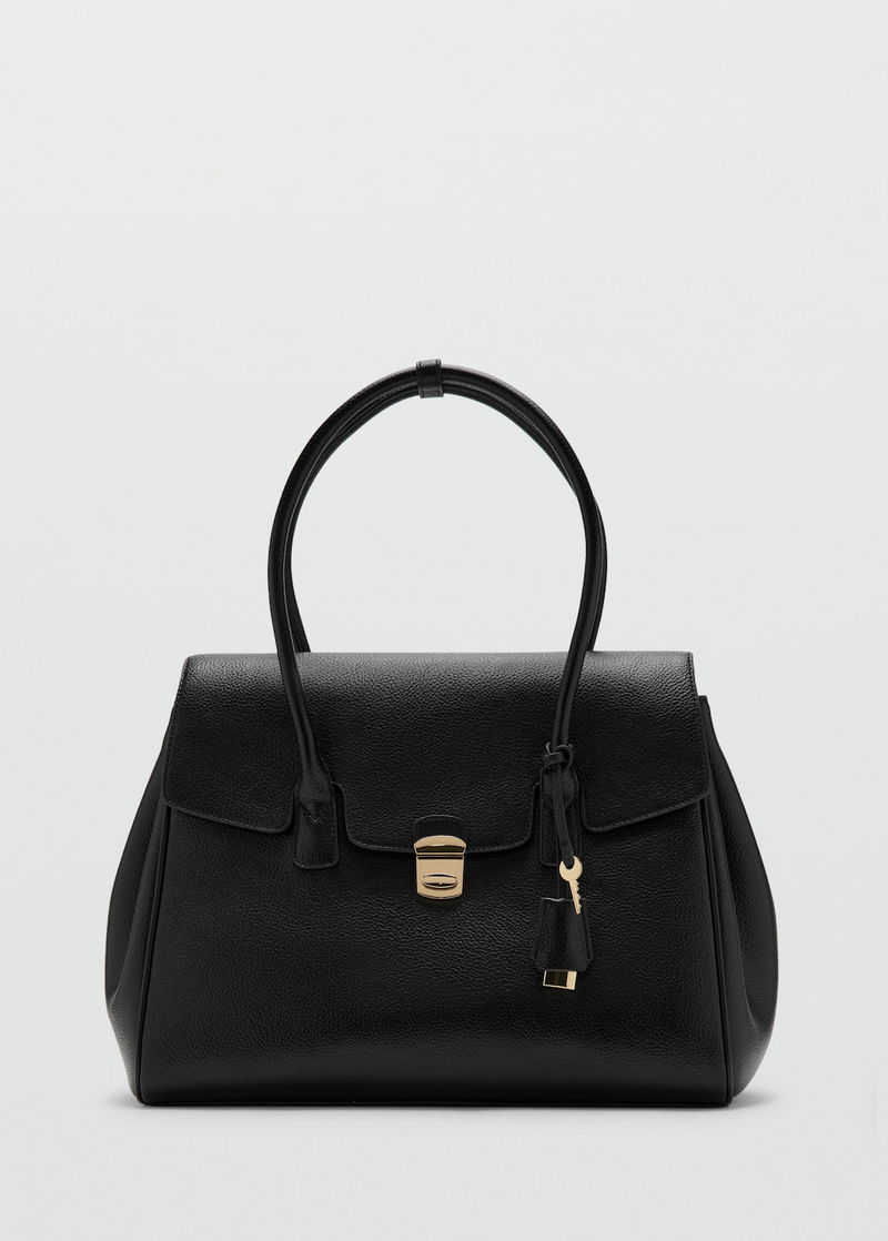 Medium. Double handle. Envelope closure. Charm detail. Interior pocket with zip closure. Dual compartment. Inner lining.