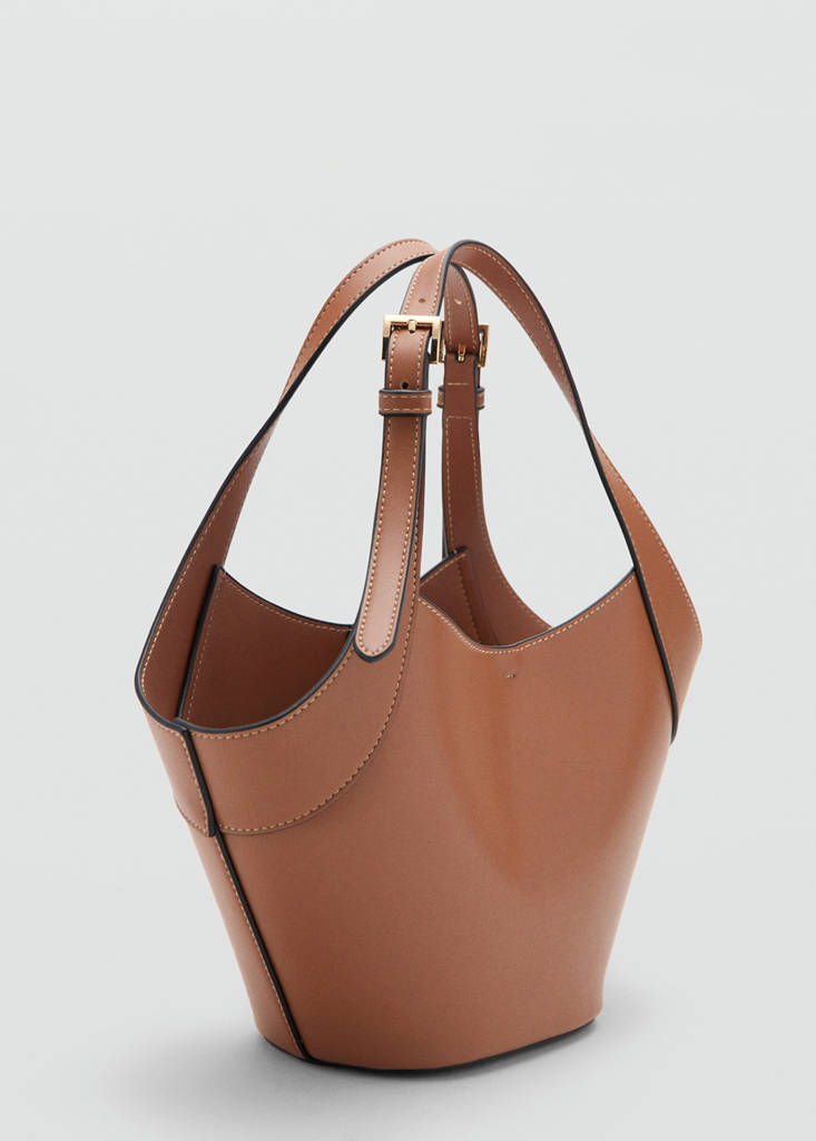 Medium size. Leather effect. Two short hand grips. Adjustable buckles. Hook closure. Inside bag.