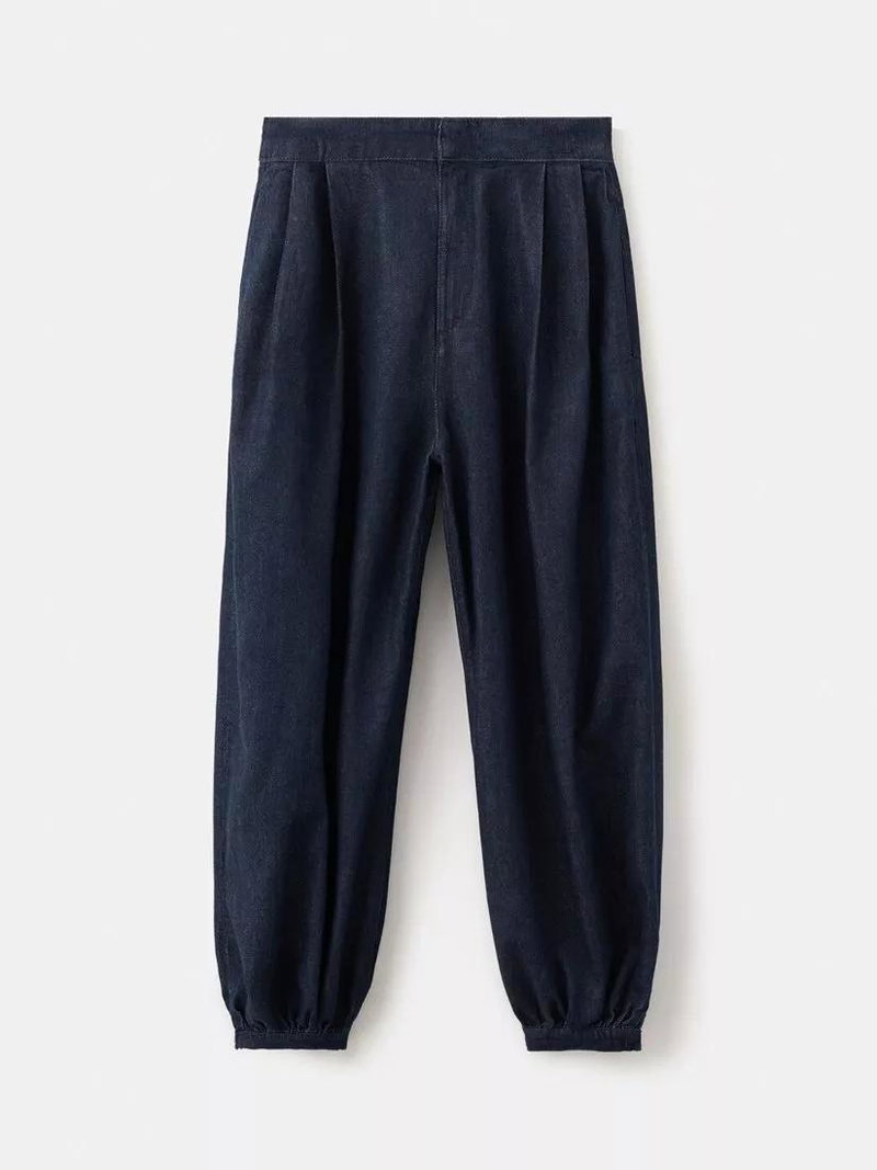Mid Rise Balloon Gathered Ankle Jeans, Mid Blue