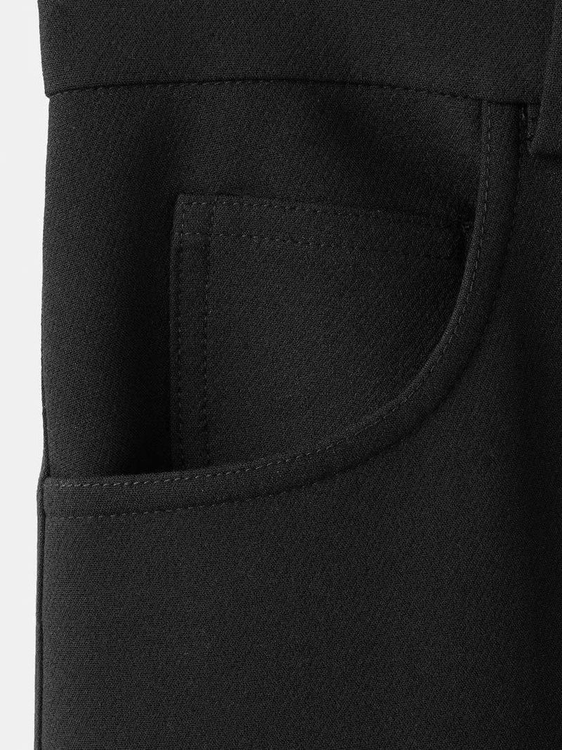 Mid Rise Straight Cropped Trousers, Black