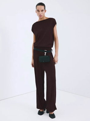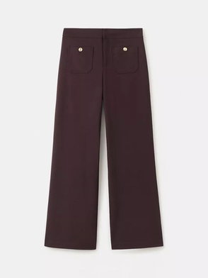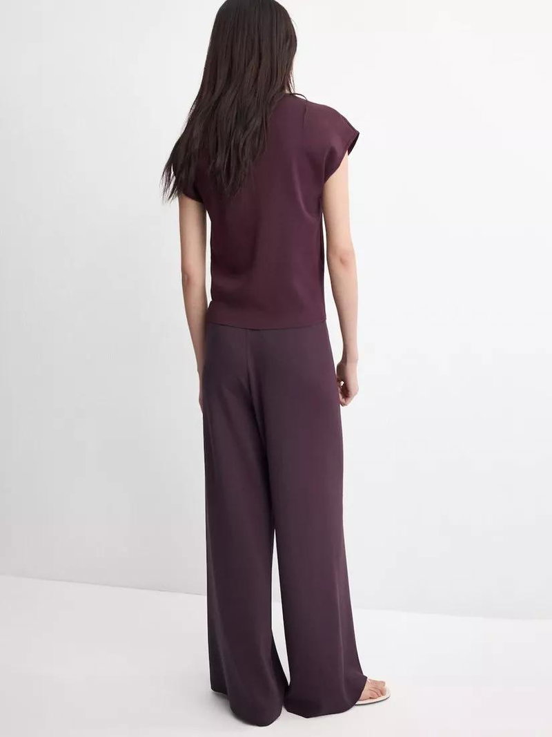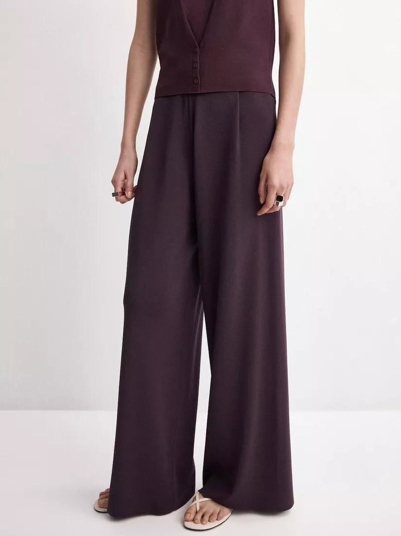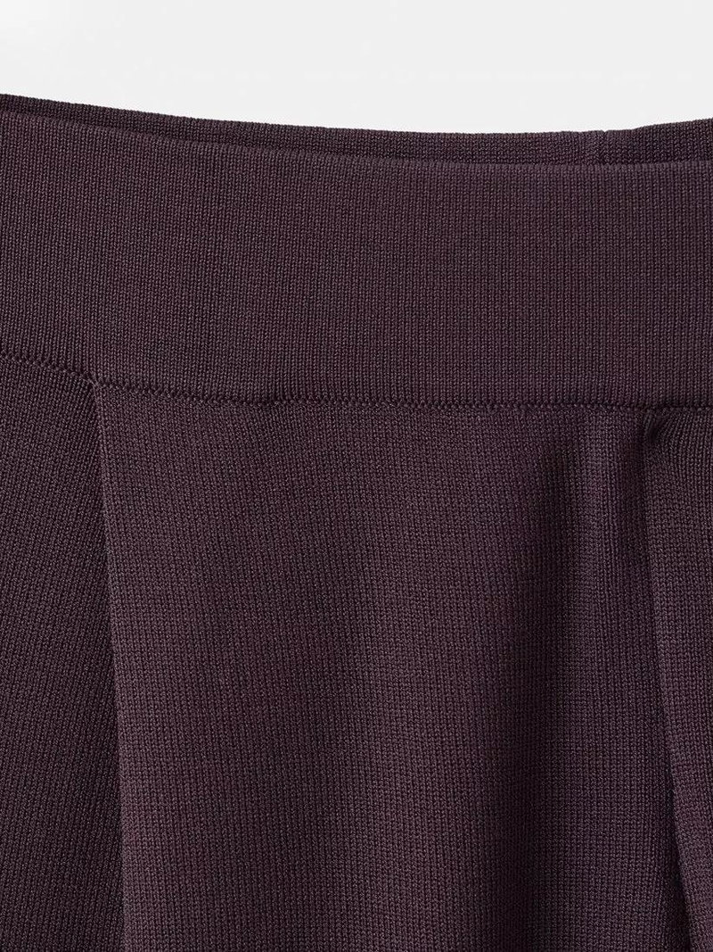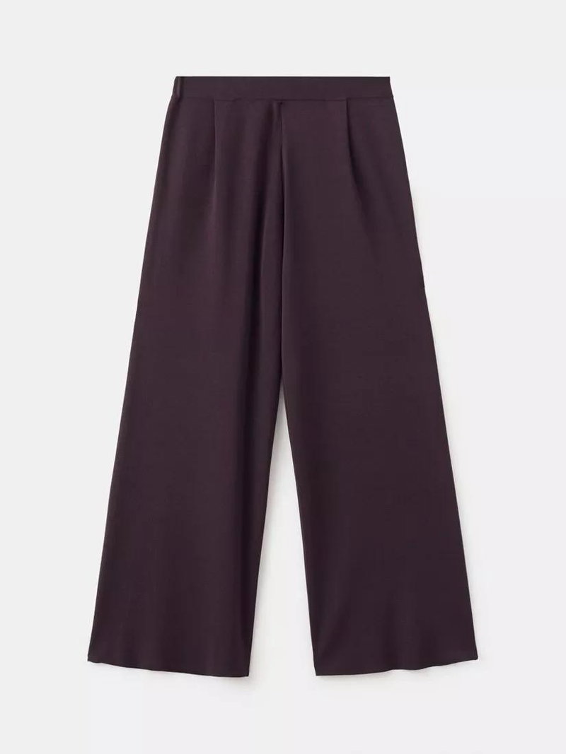 Mid-Rise Wide-Leg Knit Trousers, Bordeaux