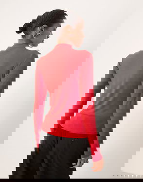 For your 'jeans and a nice top' dress code Off-shoulder style Long sleeves Fold-over panel Regular fit.