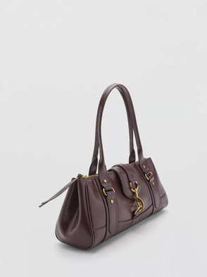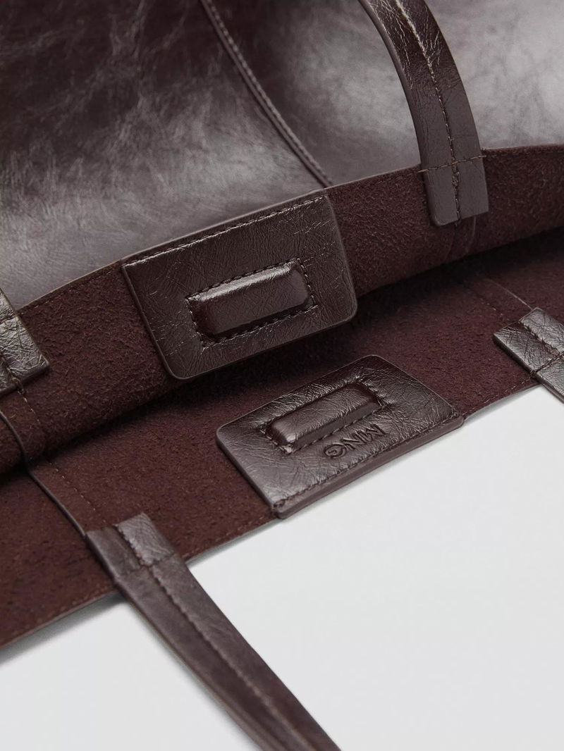 The bag has a faux leather exterior and a leather inner lining.