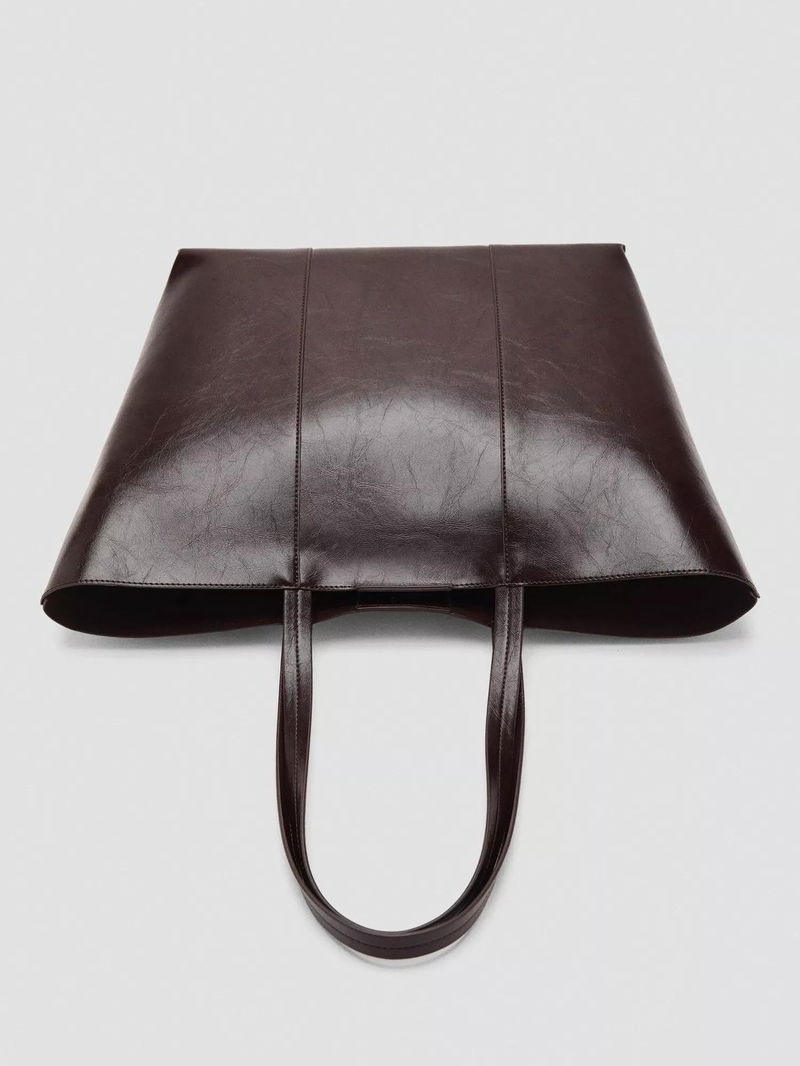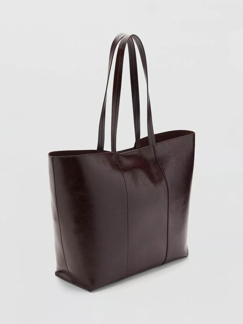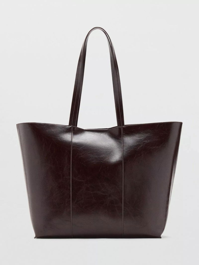 Large shopper-style bag with two shoulder straps and a magnetic button closure.