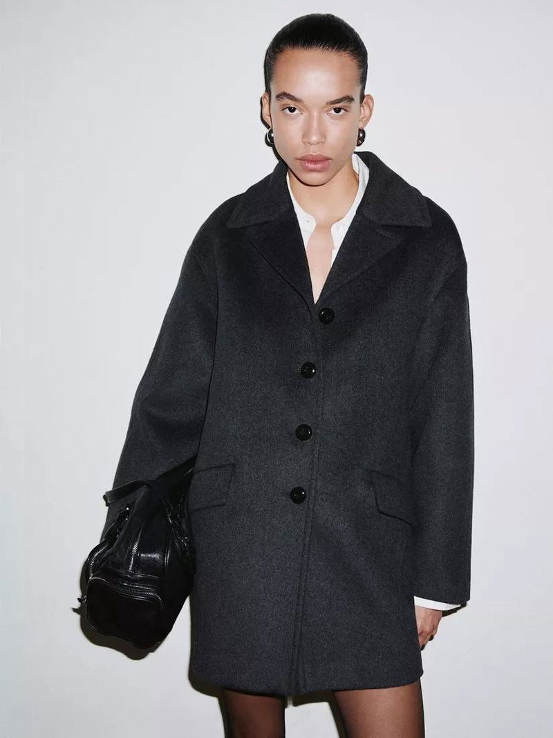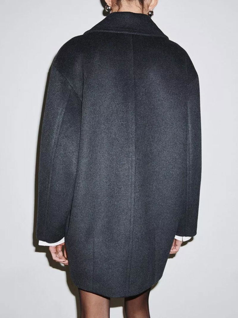 Oversized Collared Wool Blend Coat, Grey