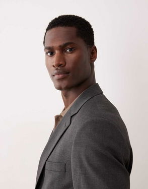 Mango's Paris blazer has a super-slim fit, a window frame print and a lapel collar. It's finessed with a welt pocket at the chest, two welt and flap pockets on the front, and inner lining.