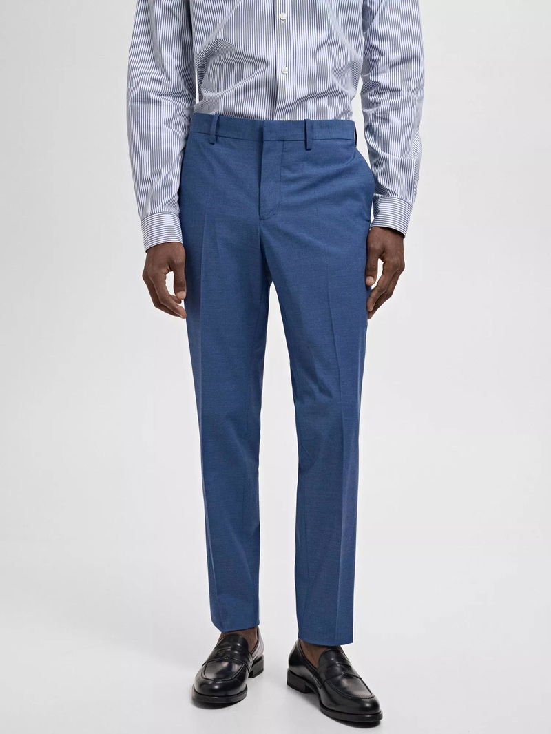 A masterclass in everyday tailoring, these slim fit trousers from Mango are built with comfort in mind thanks to their blended composition. With belt loops, side pockets and a double-breasted and zipped front closure, they feature an ironed stripe detail at the front and back.