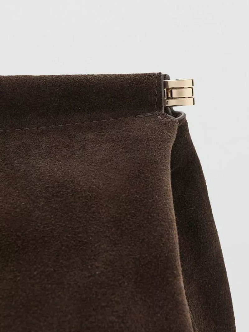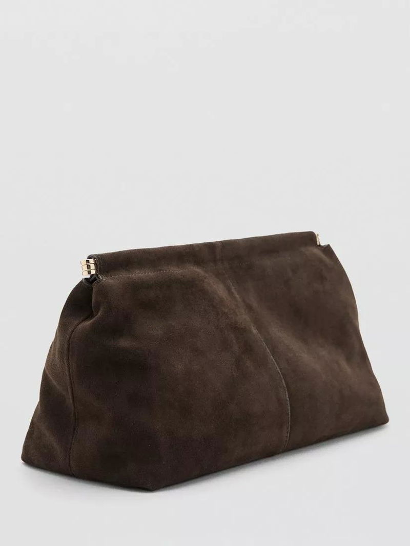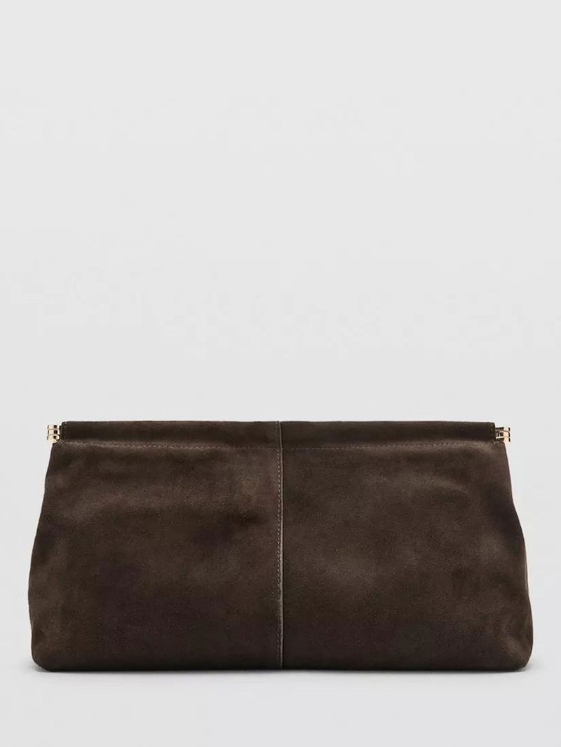 This suede clutch elevates your evenings with clever design and magnetic closure. Its soft feel and cotton lining offer comfort and practicality.
