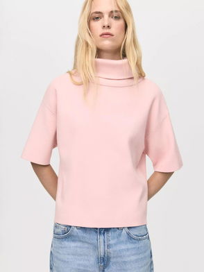 Perkins-Neck Short-Sleeved Sweater