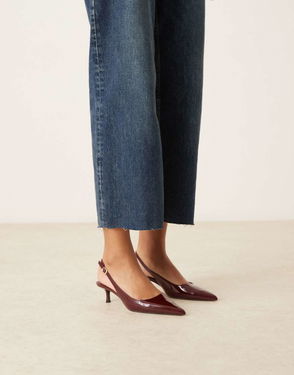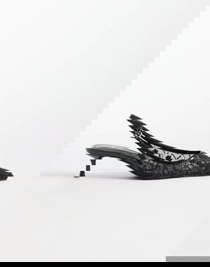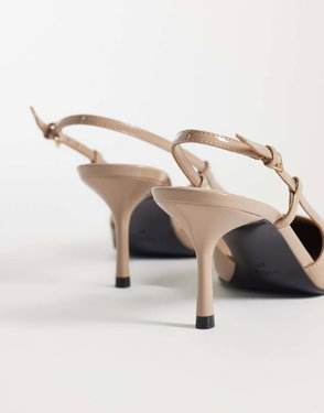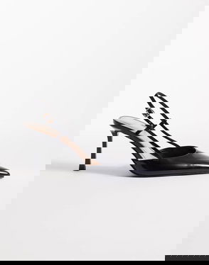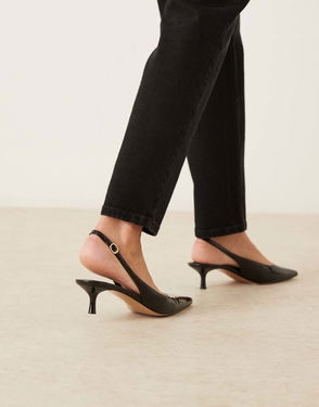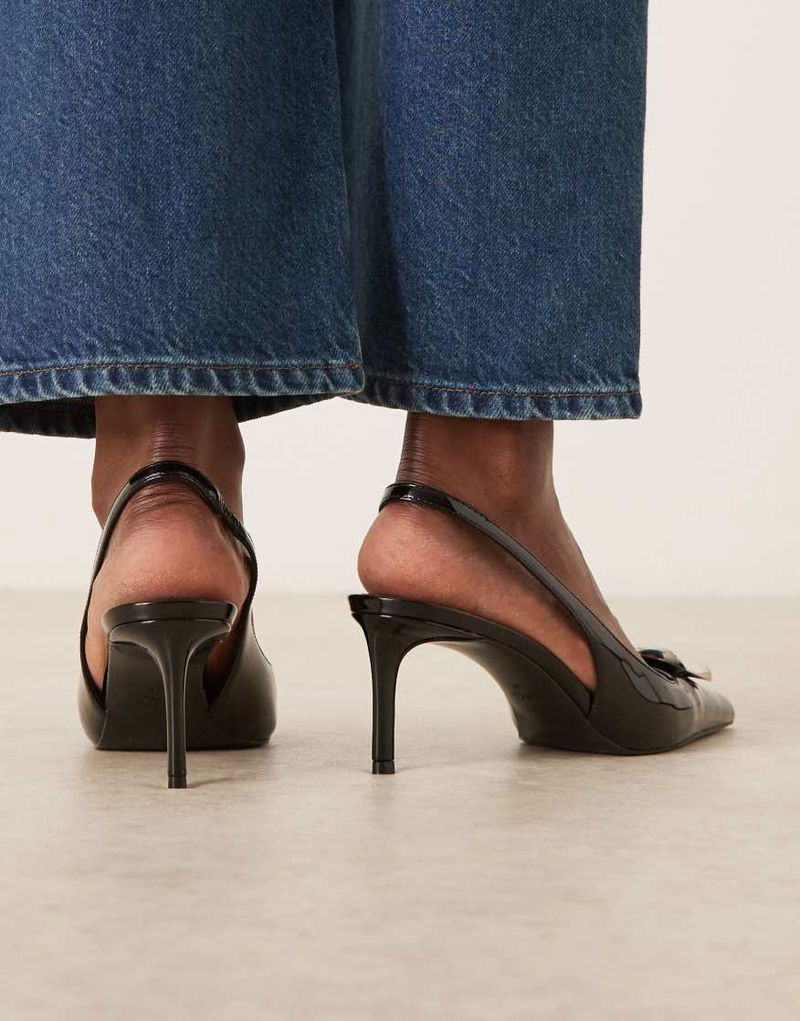 Pointed Toe Slingback Heels With Statement Hardware In Black