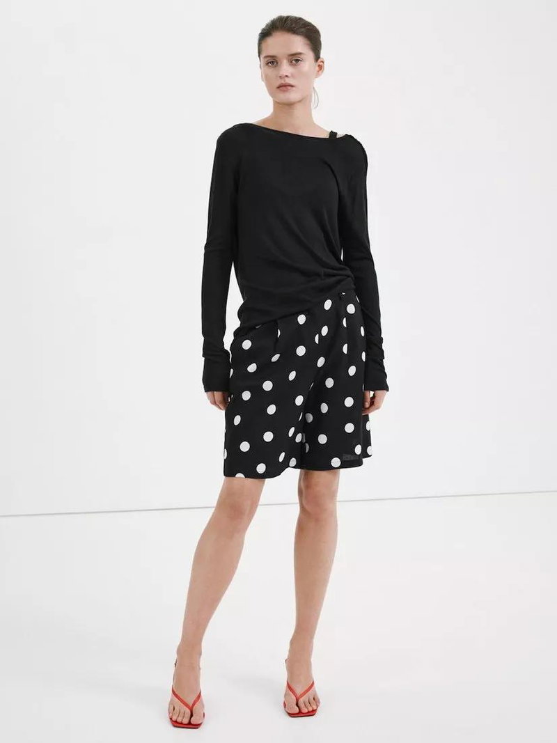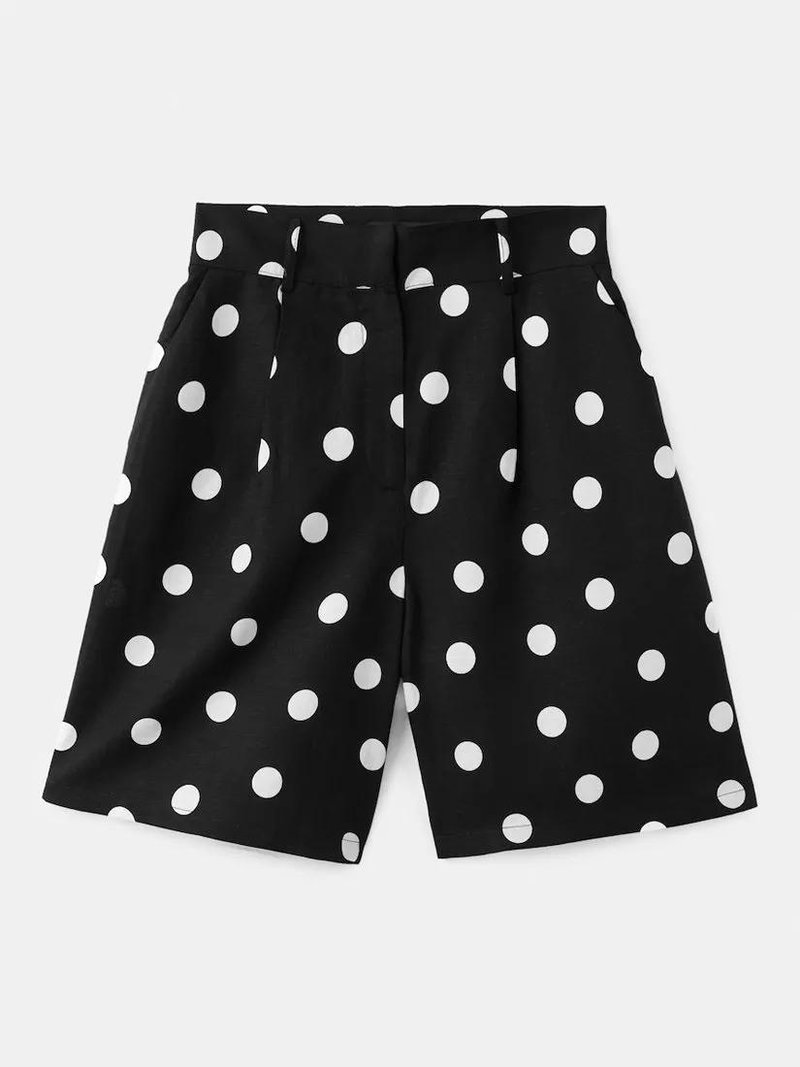 Polka Dot Mid Rise Shorts, Black