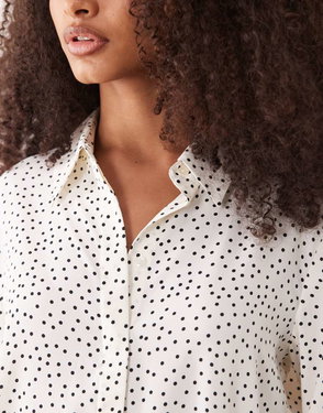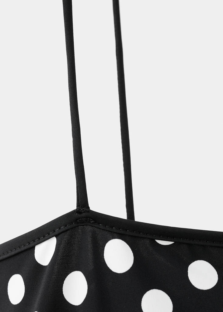 Fitted design. Short design. Spots print. Straight neck. Sleeveless. Thin straps. No Fastening. Total look.