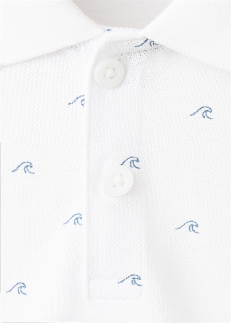 100% cotton fabric. Straight design. Polo-neck with button closure. Short sleeves. Printed design.