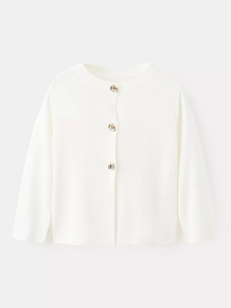 Round Neck Jewel Button Cardigan