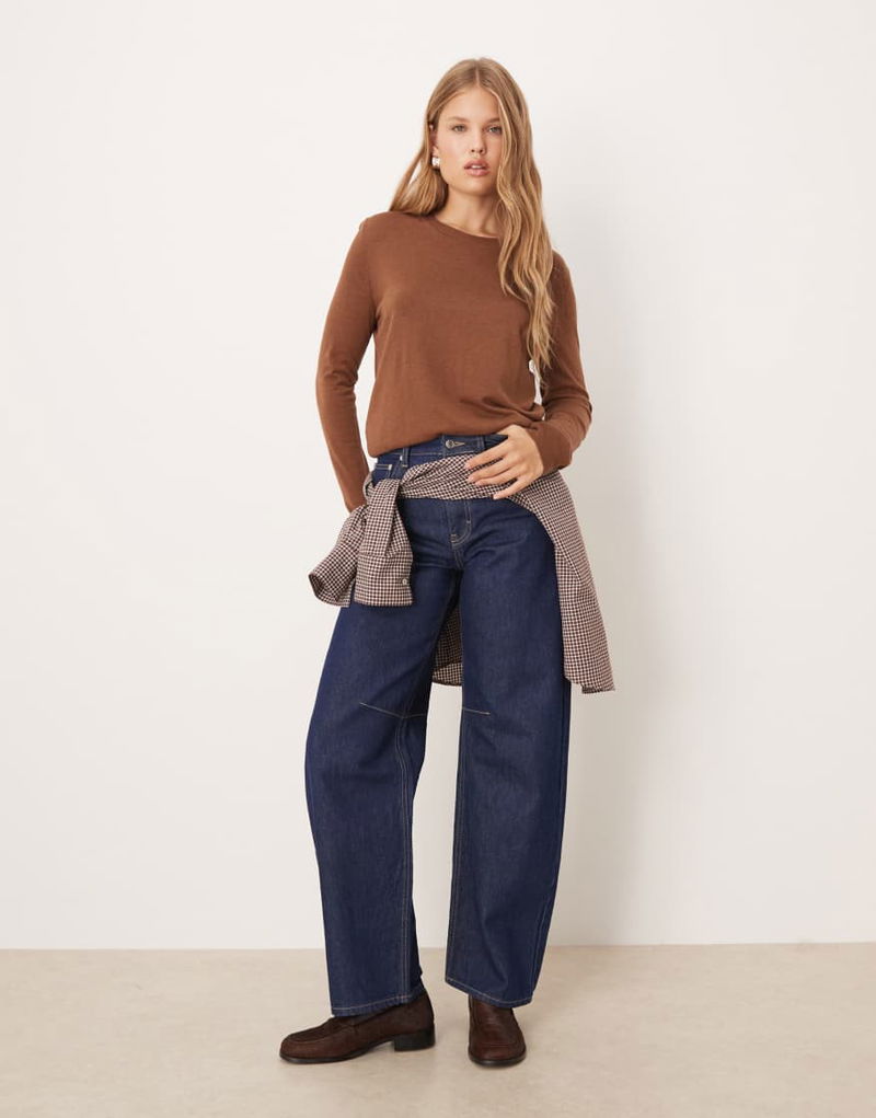 Round Neck Lightweight Jumper In Brown