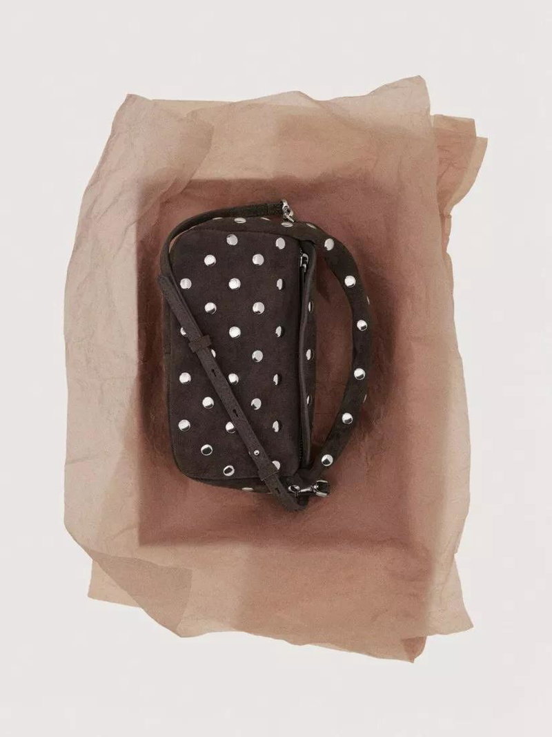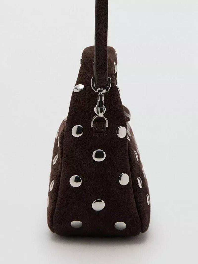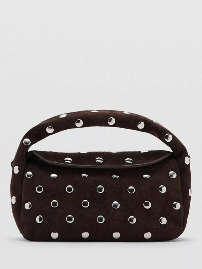 Sandra Suede Studded Clutch Bag, Dark Brown