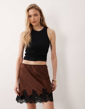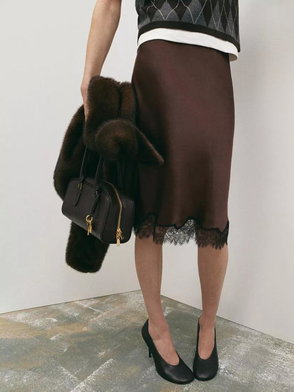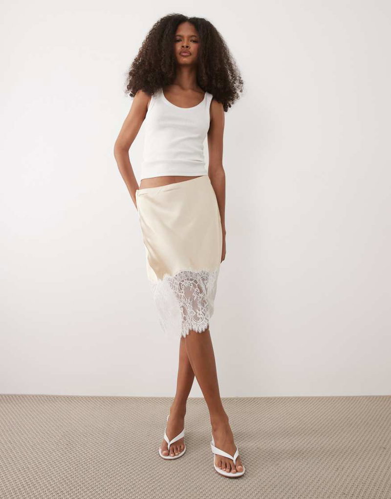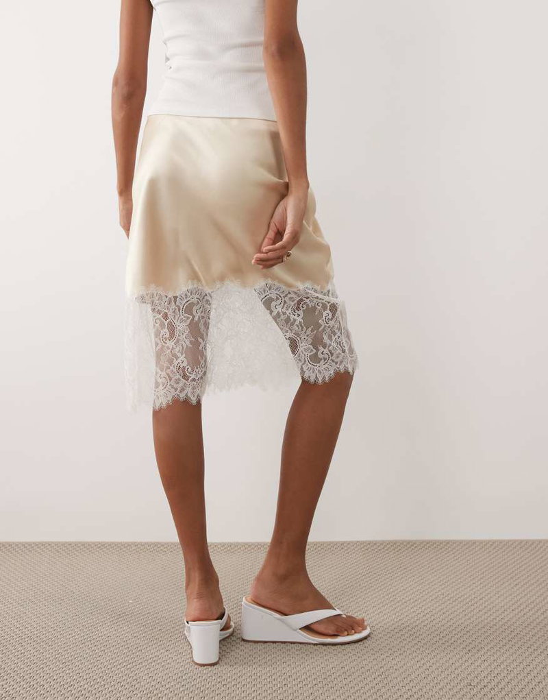 Satin And Lace Knee Length Skirt In Beige