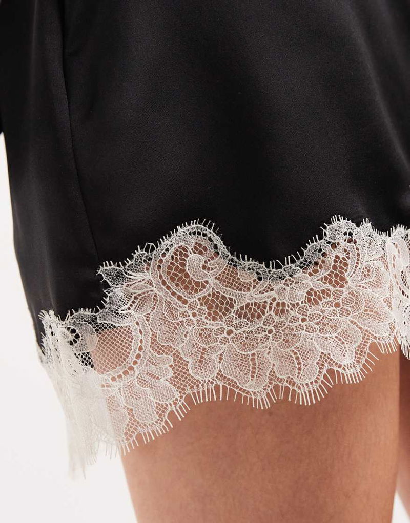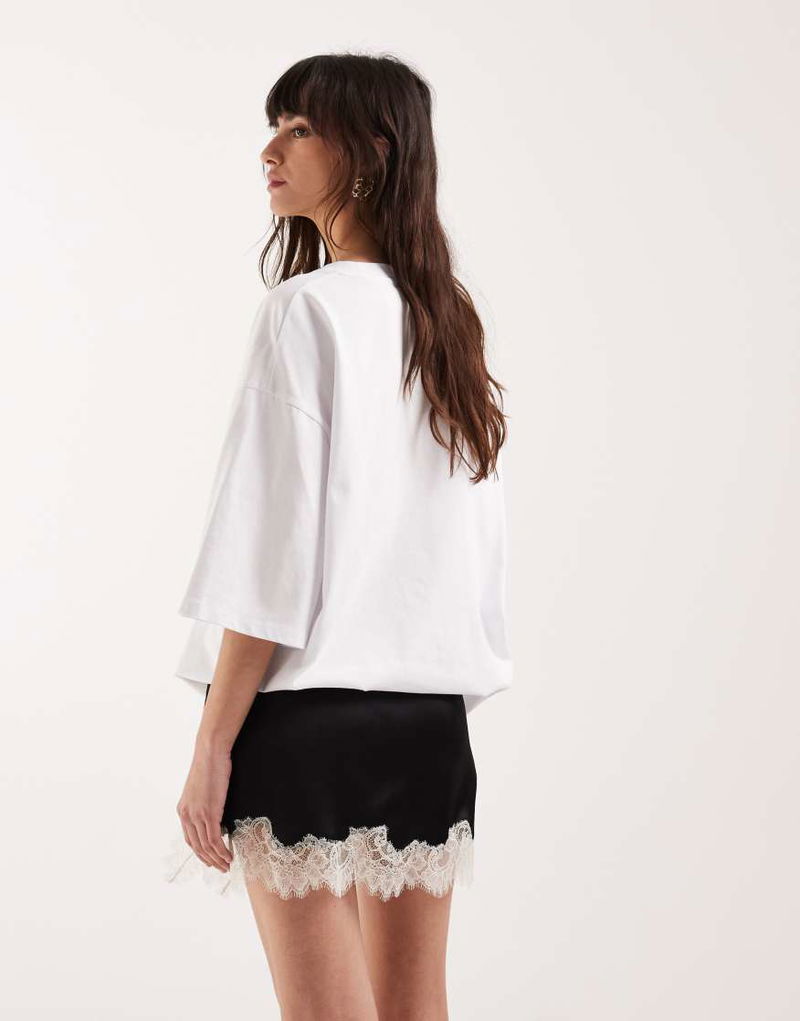 Satin Mini Skirt With Lace Trim