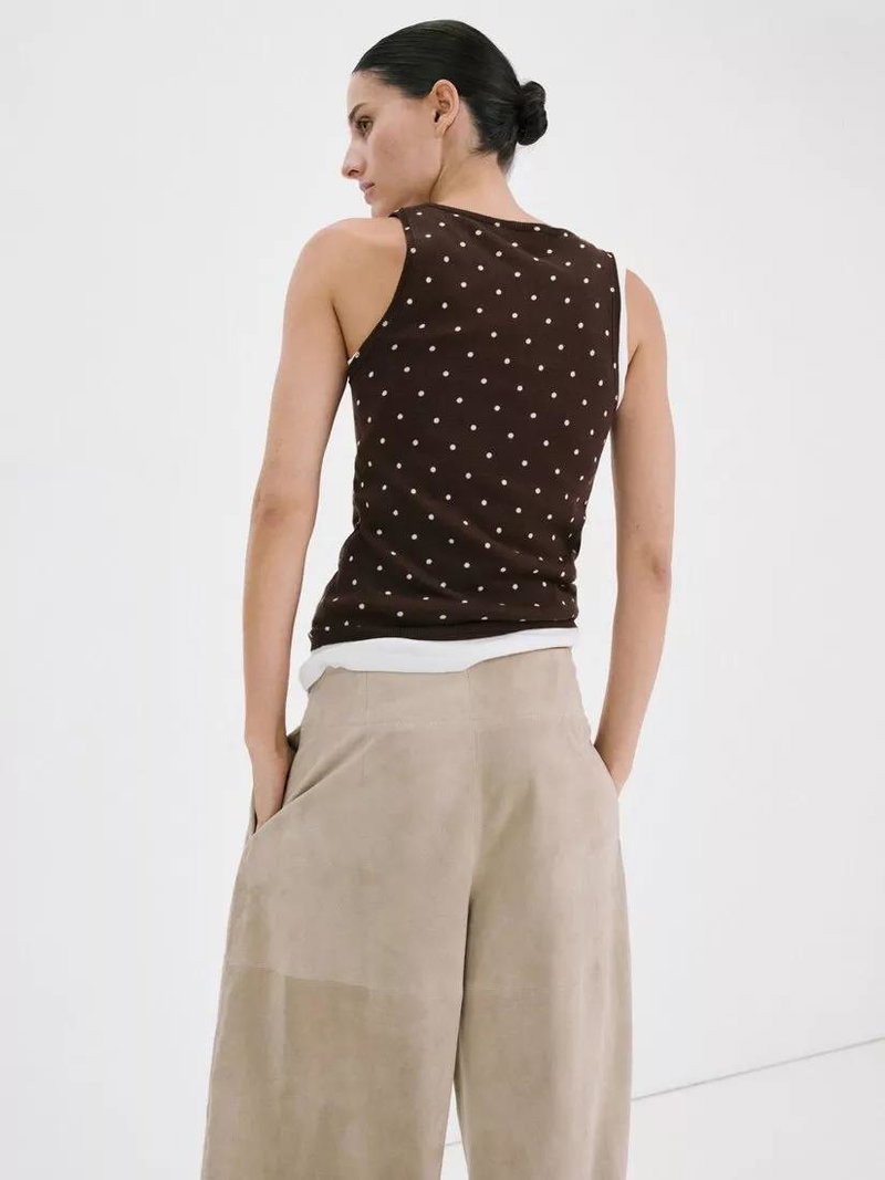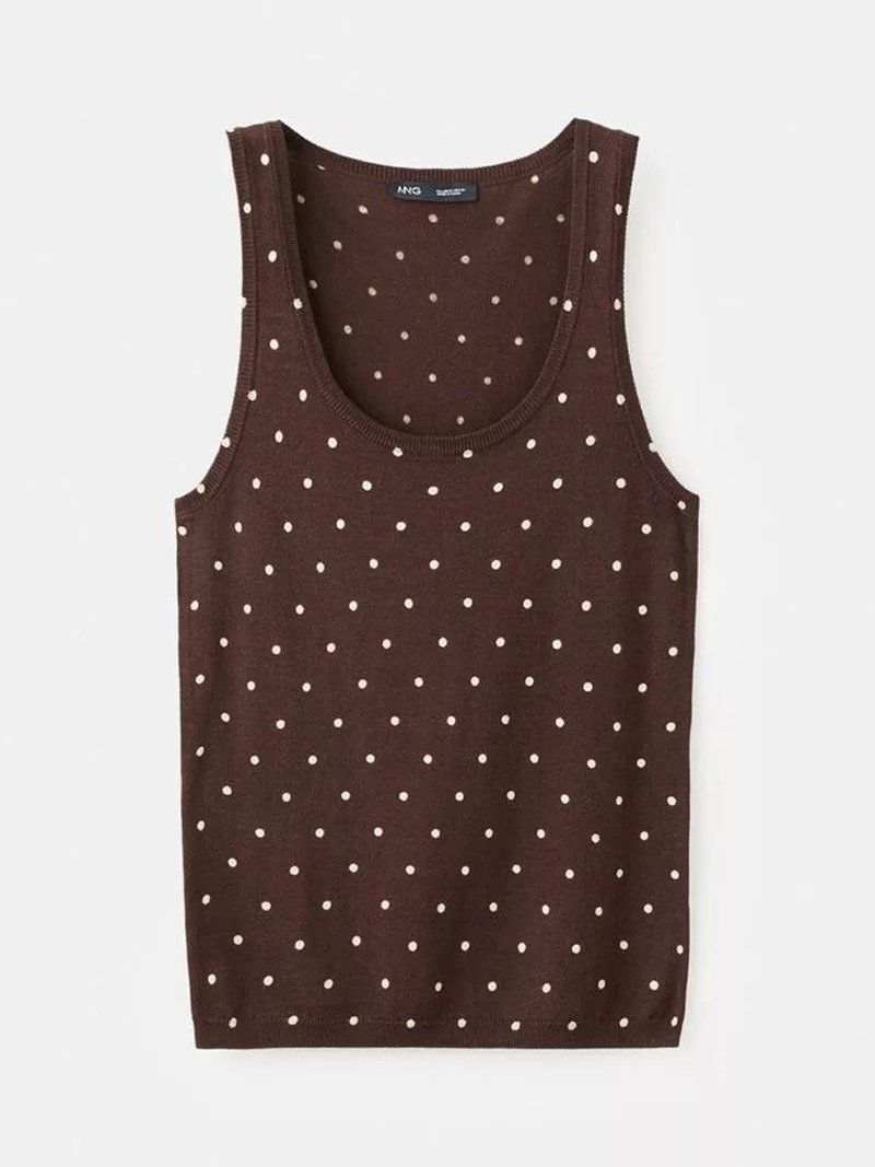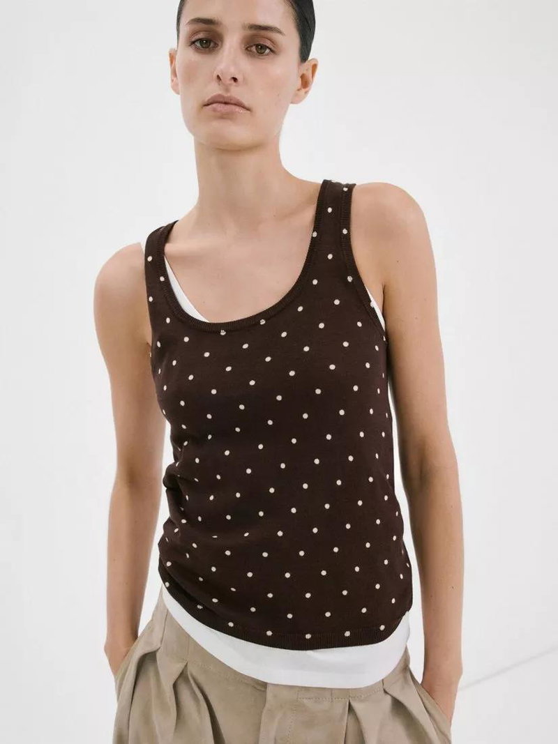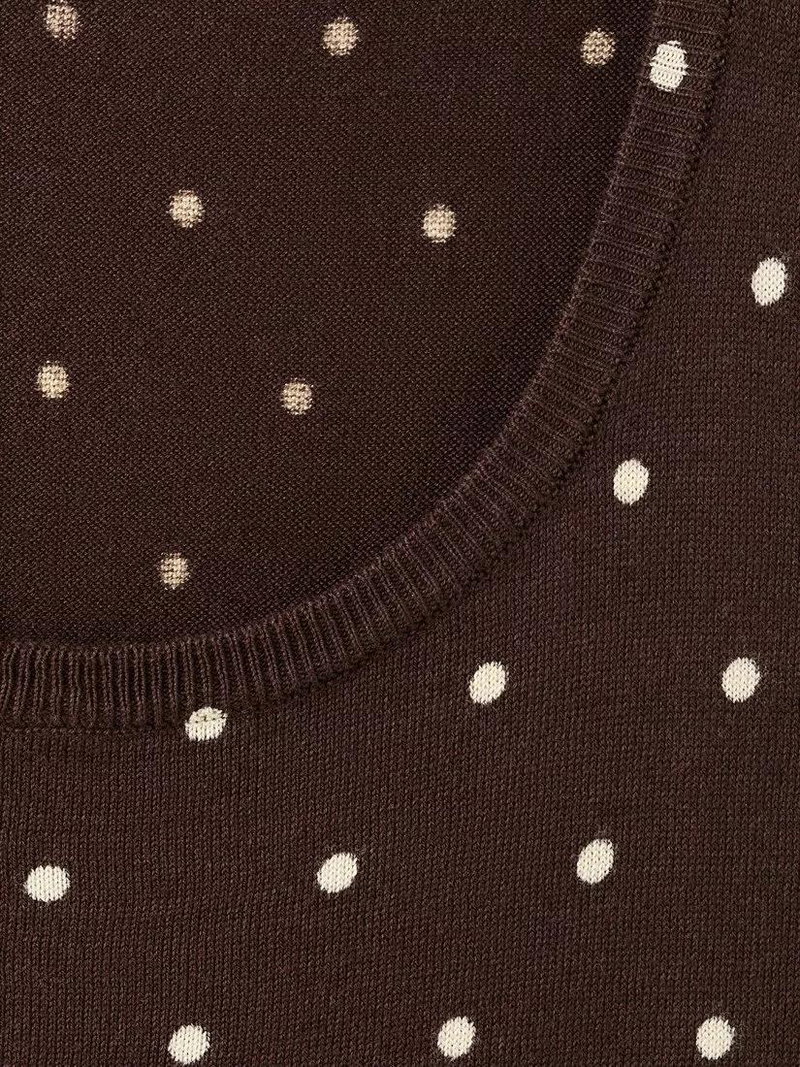 Scoop Neck Polka Dot Knit Camisole, Chocolate